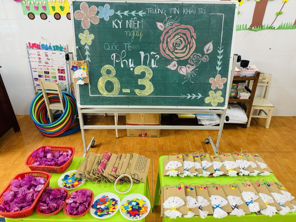 Trường Mầm non Khải Trí kính chúc các bà, các mẹ, các chị em có một ngày 8/3 tràn đầy niềm vui và ý nghĩa. Chúc các bà, các mẹ, các chị em phụ nữ luôn luôn xinh đẹp và rạng ngời như những bông hoa, được bao bọc bởi tình thương, hạnh phúc và luôn thành công trong cuộc sống.