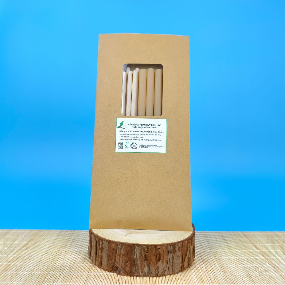 - Thân thiện với môi trường: Ống hút bột mì có thể tự phân hủy trong vòng 3–6 tháng khi chôn lấp trong đất hoặc gặp điều kiện ẩm. Không để lại vi nhựa, không thải độc tố ra môi trường.