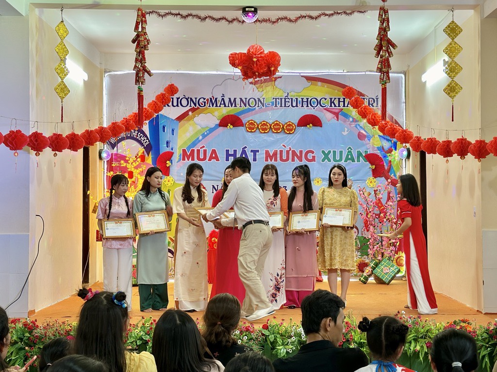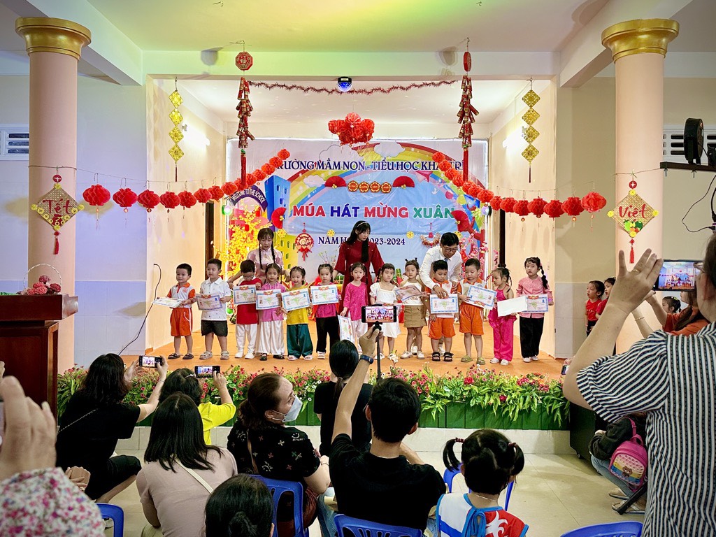 Sự kết hợp giữa hoạt động Múa Hát Mừng Xuân năm học 2024 và khen thưởng các bé xuất sắc trong học kỳ qua đã tạo ra một không khí vui tươi và sôi động, mang lại những trải nghiệm tuyệt vời và kỷ niệm đáng nhớ cho tất cả mọi người tham dự.