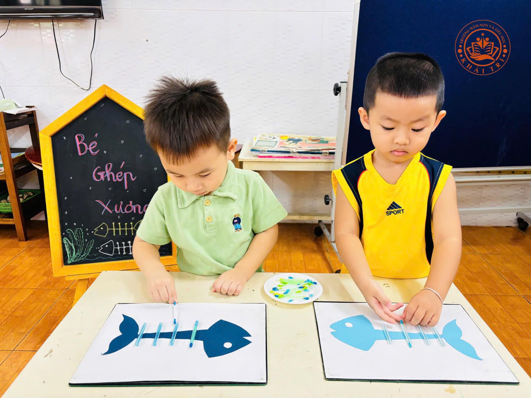 Tại trường Mầm Non Khải Trí, hoạt động Tạo Hình Bé Ghép Xương Cá đã diễn ra sôi nổi và tràn đầy niềm vui. Đây là một hoạt động không chỉ thú vị mà còn rất bổ ích cho các bé lớp Mầm, giúp các em khám phá và hiểu biết hơn về thế giới xung quanh.