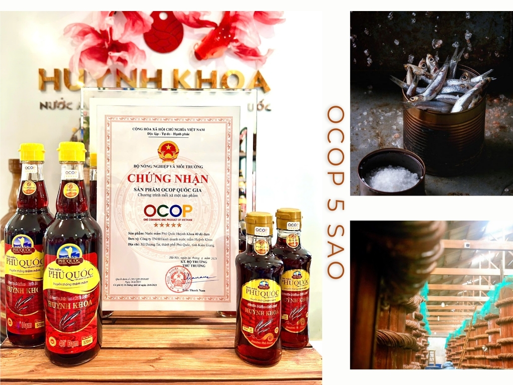 Recognized with both the EU Geographical Indication and Vietnam’s National 5-Star OCOP Certification, Huynh Khoa Fish Sauce stands as more than a condiment — it is a reflection of purity, tradition, and time-honored artistry, carried through generations from the heart of Phu Quoc.