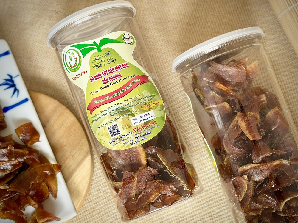 Vỏ bưởi sấy giòn là món ăn vặt độc đáo, thơm ngon và giàu dinh dưỡng, được chế biến từ phần vỏ bưởi tươi. Với công nghệ sấy hiện đại, vỏ bưởi giữ được hương vị đặc trưng, giòn tan cùng vị ngọt dịu, hơi the the của nước cốt chanh.
