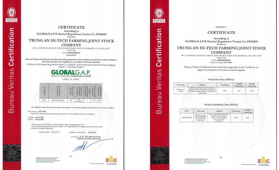 Có mặt trên thị trường lúa gạo từ những ngày đầu tiên, Trung An đã dần khẳng định được vị thế hàng đầu, trở thành đơn vị sản xuất – xuất khẩu lúa gạo sạch lớn nhất Việt Nam. Với vùng nông nghiệp sạch trải rộng hàng chục ngàn hecta khắp các tỉnh miền Tây, Trung An cho ra đời sản lượng với 150.000 – 200.000 ngàn tấn/ năm.