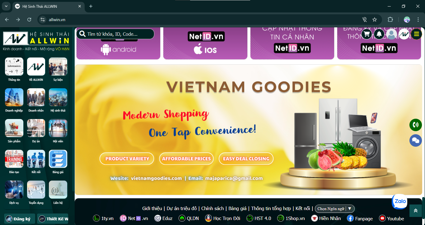 - Được quảng bá ở giữa trang web Hệ sinh thái ALLWIN.