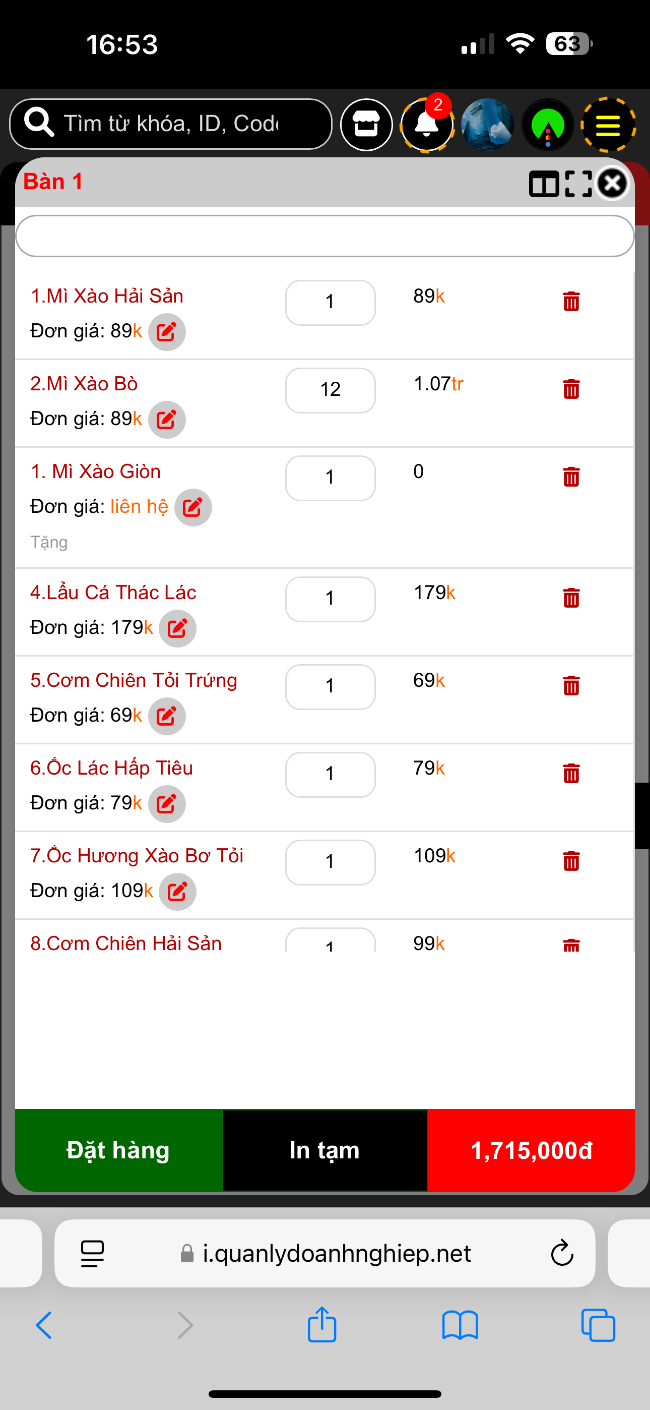 - Chỉnh sửa số lượng sản phẩm, xóa sản phẩm và ghi chú món chỉ trên một giao diện