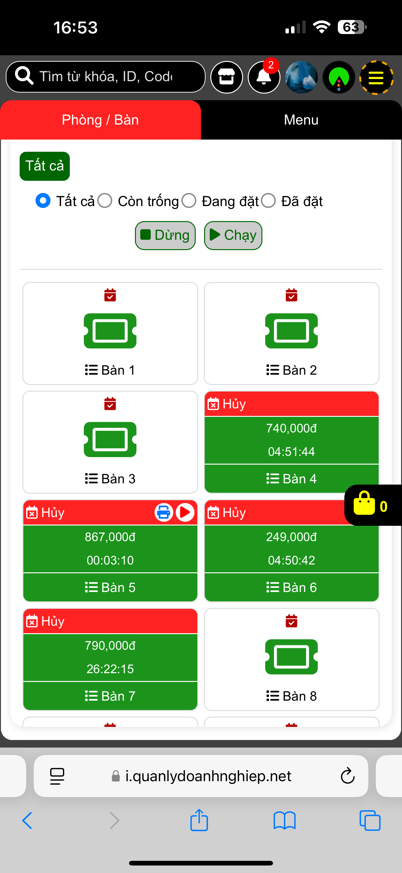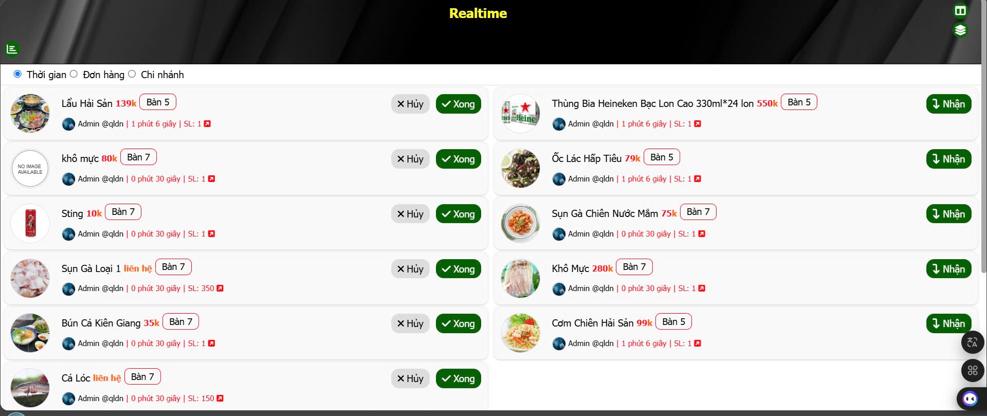 - Danh sách bàn có 3 chế độ: Đang đặt, đã đặt, và chưa đặt