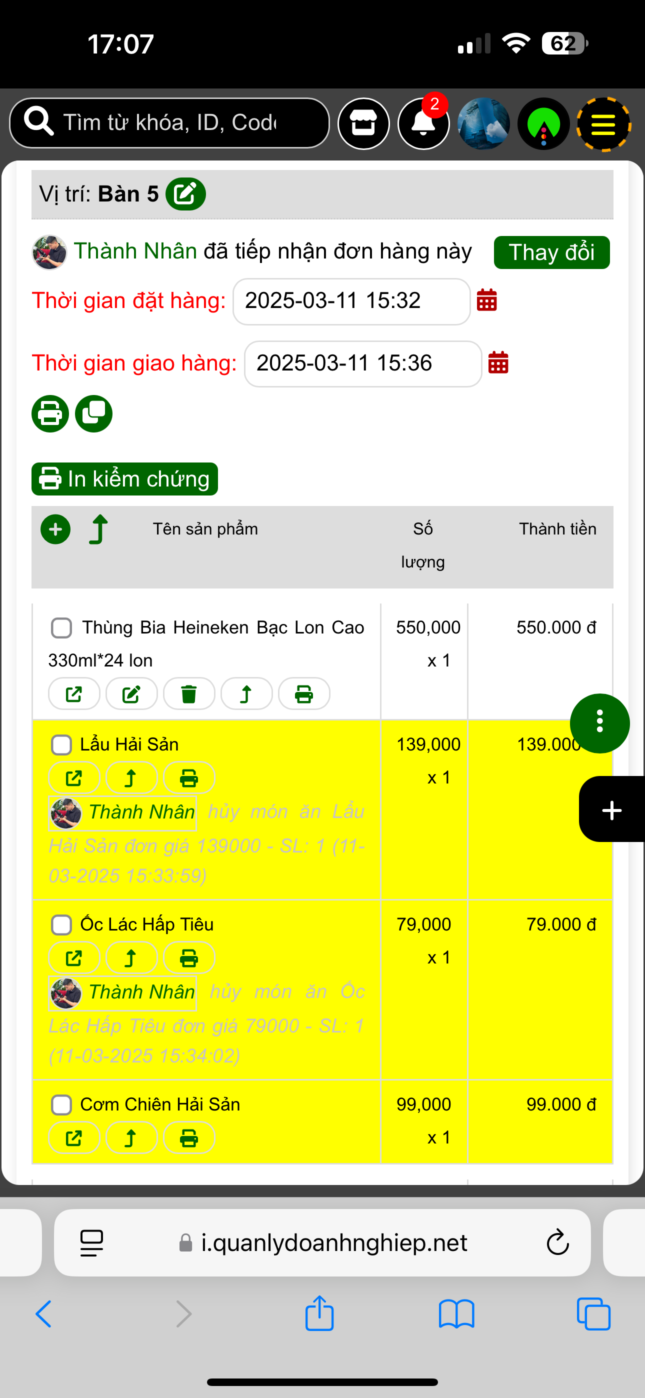 - Trả món, gọi thêm món chỉ trên một giao diện đơn hàng