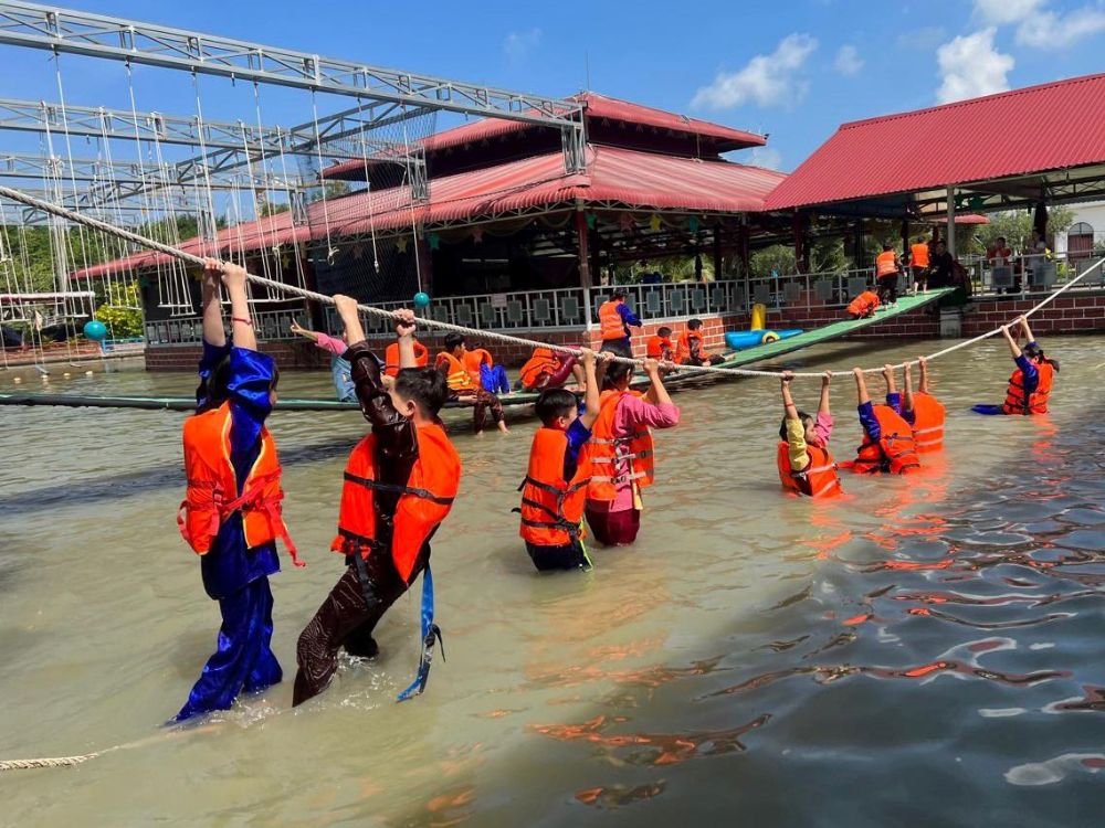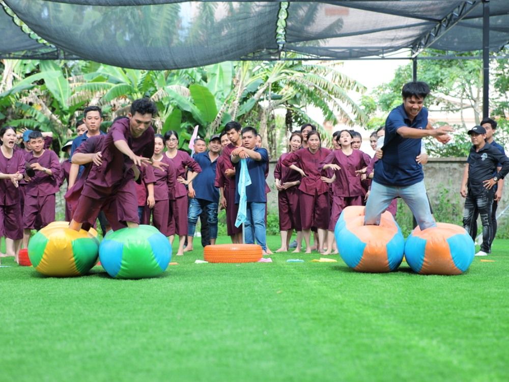 Các trò chơi dân gian trên cạn đa dạng và sôi động, như khởi động theo nhạc cùng quản trò, kéo co, đội nón bảo hiểm nhảy bao bố, cởi trâu nhặt trứng, gánh nước về làng, truyền nước đồng đội, đập bong bóng, bánh xe thần tốc… Không chỉ mang tính giải trí, những hoạt động này còn góp phần gắn kết tập thể và lưu giữ nét văn hóa truyền thống địa phương.