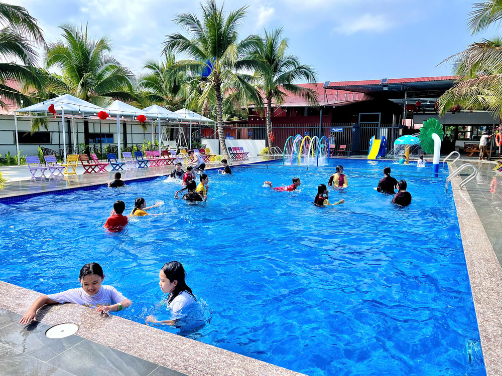 Ngay từ khi vào cổng, không gian xanh mát và rộng rãi đã khiến trẻ tò mò, thích thú. Các em được tự do chạy nhảy, quan sát cây cối, hồ nước và hòa mình vào thiên nhiên thay vì cầm điện thoại trên tay. Chỉ cần đi dạo quanh khuôn viên, tham gia vài hoạt động khởi động nhẹ, trẻ đã bắt đầu quên dần thói quen mở màn hình.