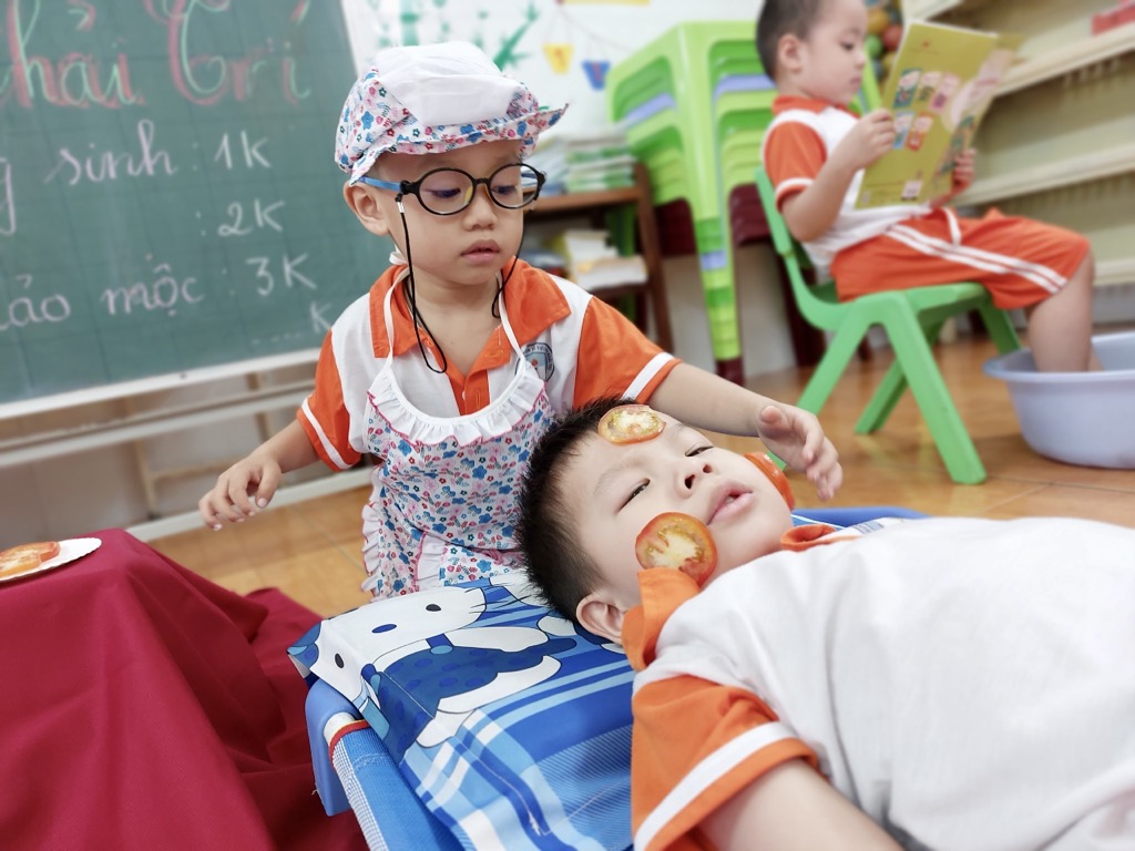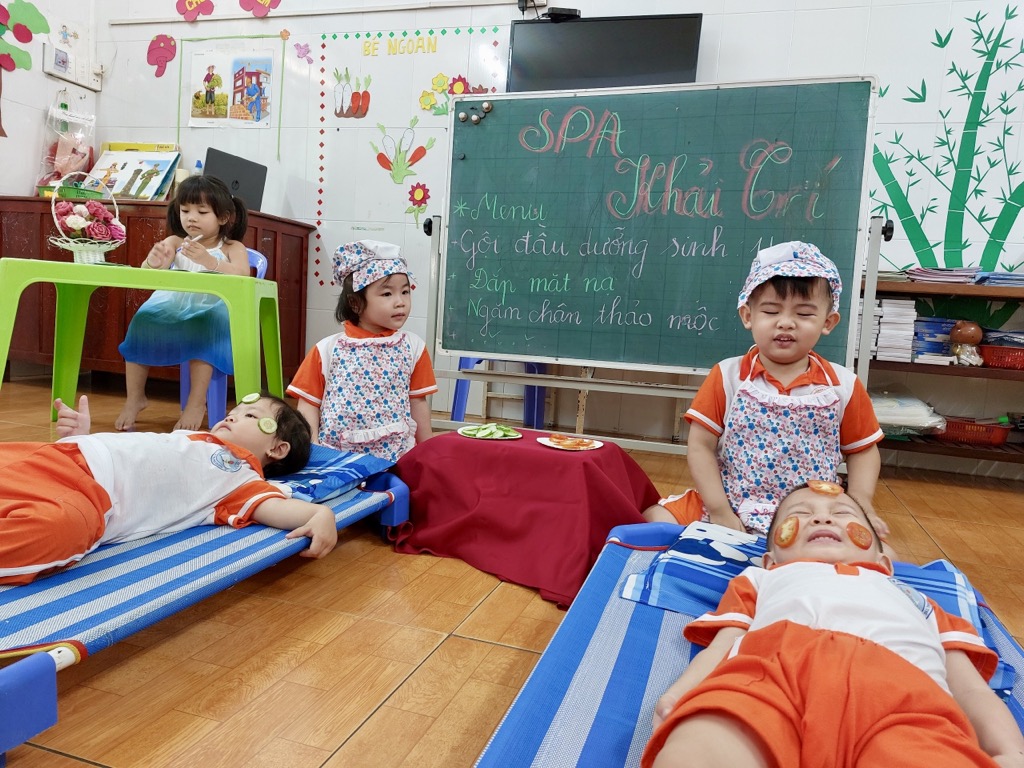 Tại trường Mầm Non Khải Trí, các cô giáo giàu kinh nghiệm và trình độ chuyên môn cao luôn tận tâm với công việc giảng dạy của mình. Các cô luôn tạo ra những trải nghiệm đáng nhớ và ý nghĩa cho các bé yêu của mình, trong đó buổi trải nghiệm làm Spa không phải là ngoại lệ. Đây là dịp để các bé được thư giãn, tận hưởng và tham gia vào các hoạt động sáng tạo.