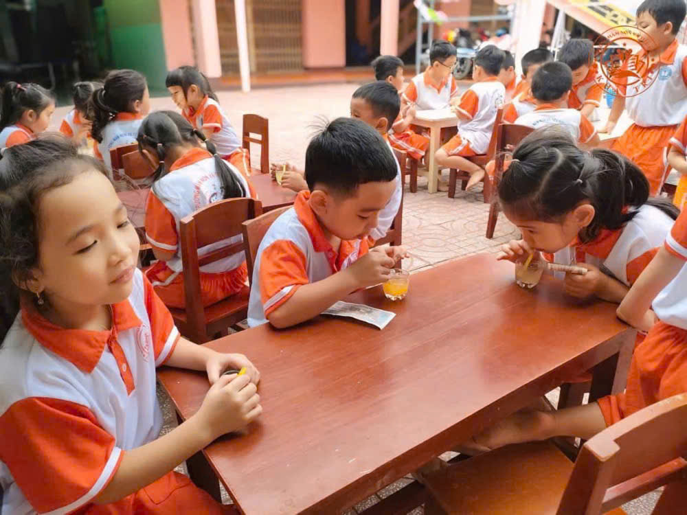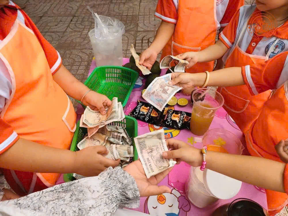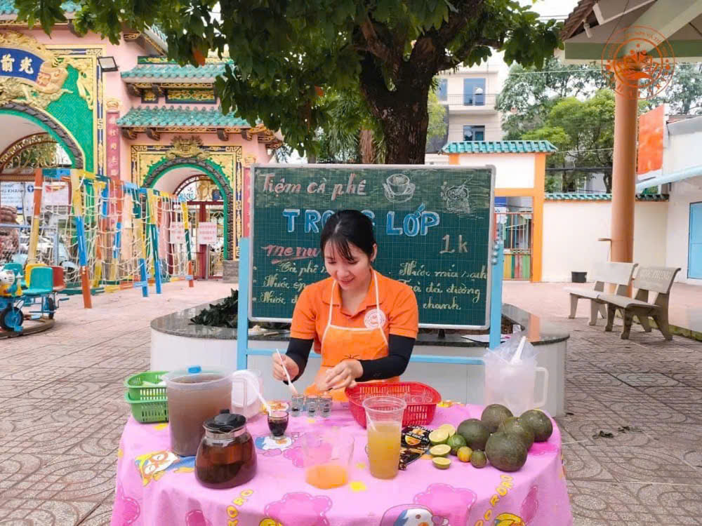 Các bé trong lớp rất hào hứng tham gia vào hoạt động lần này, mỗi bạn sẽ được giao nhiệm vụ khác nhau, có bạn phụ trách pha chế, có bạn lo việc phục vụ và một số bạn khác đảm nhiệm việc thu tiền. Điều đặc biệt là giá cho mỗi ly nước chỉ 1.000 đồng, rất hợp lý và phù hợp với túi tiền của các bé.