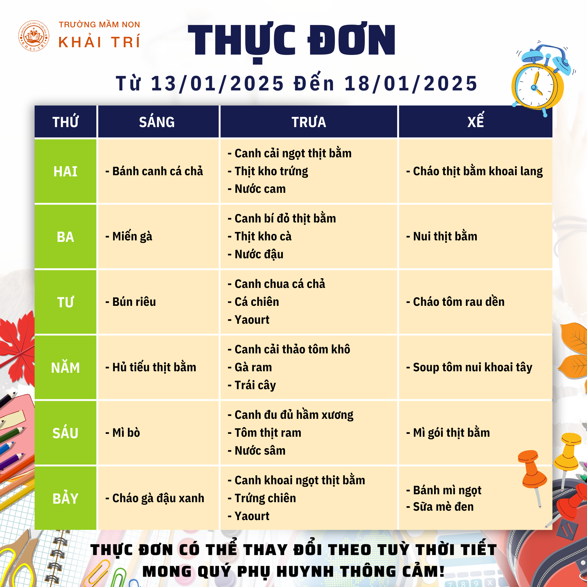 Thực Đơn Tuần Mới (Từ 13/01/2025 - 18/01/2025)