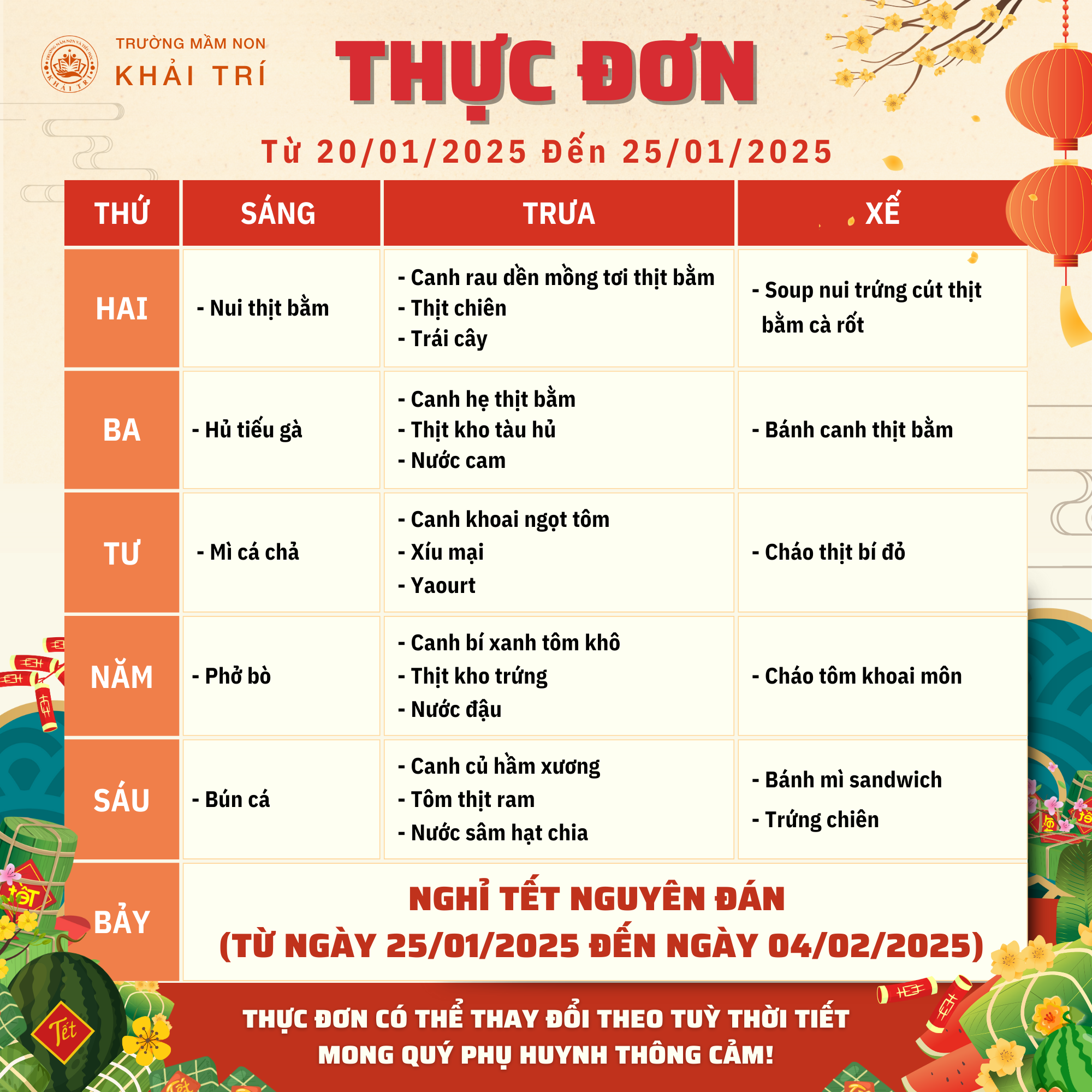 Thực Đơn Tuần Mới (Từ 20/01/2025 - 25/01/2025)