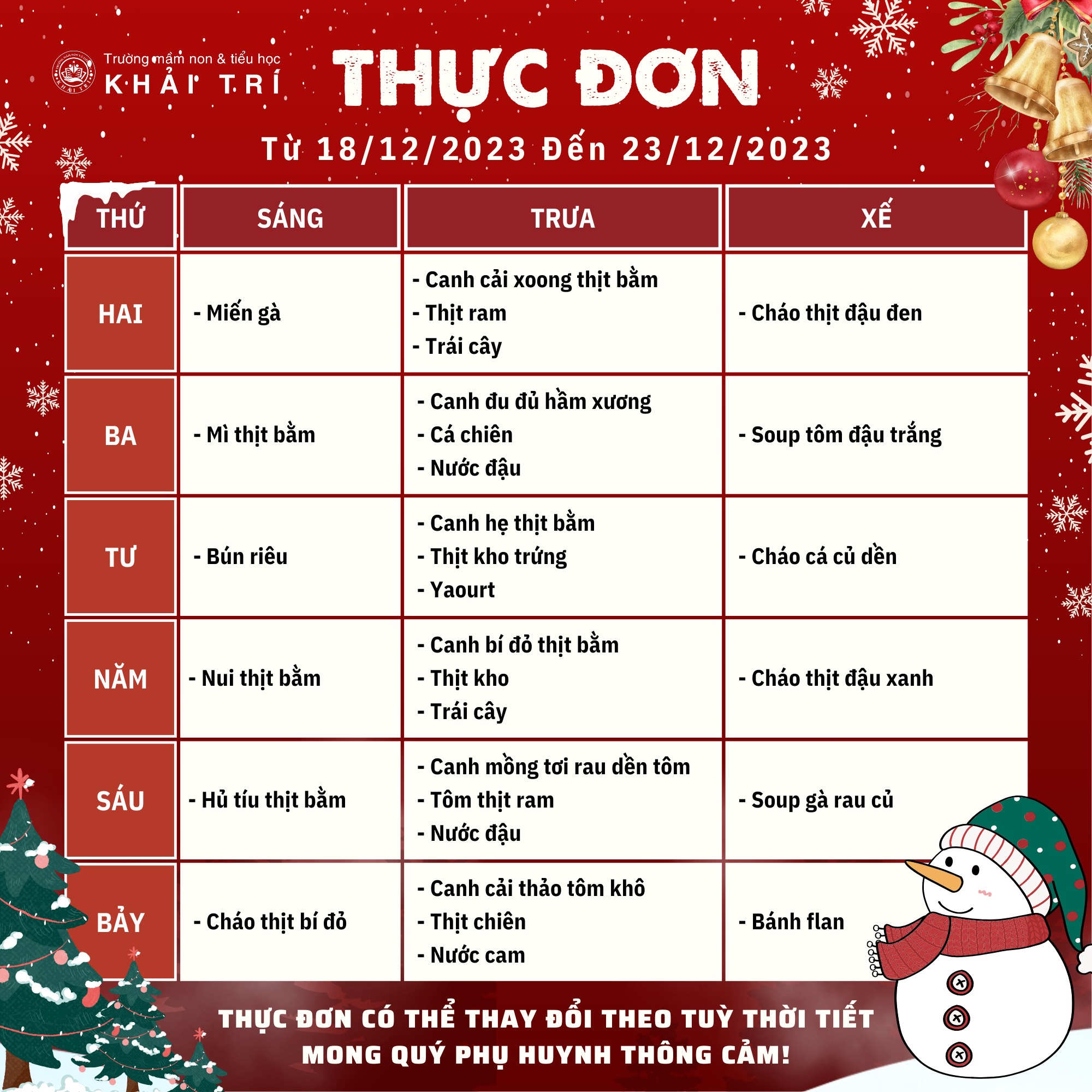 Thực Đơn Tuần Mới (Từ 18/12 Đến 23/12)