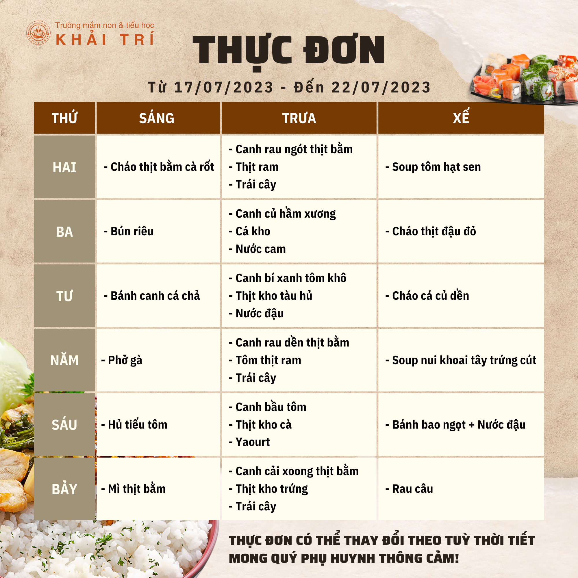 Thực Đơn Tuần Mới (Từ 07/07/2025 - 12/07/2025)