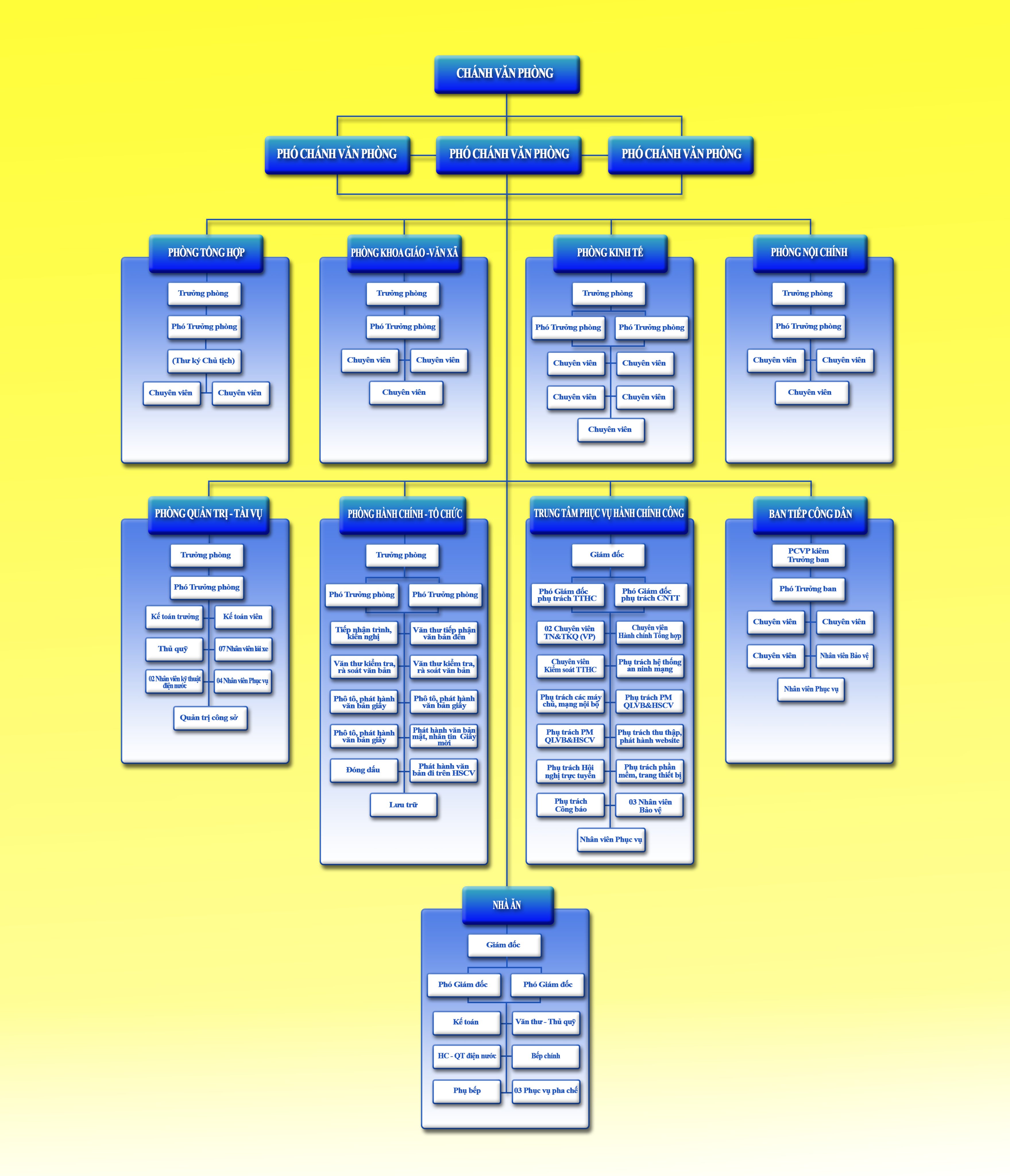 Sơ đồ tổ chức Văn phòng UBND tỉnh Kiên Giang theo Quyết định số 72/QĐ-VP ngày 09/6/2020 của Văn phòng UBND tỉnh Kiên Giang ban hành Quy định cụ thể chức năng, nhiệm vụ và bố trí nhân sự của các phòng, ban, trung tâm và đơn vị sự nghiệp thuộc Văn phòng UBND tỉnh theo Quyết định số 729/QĐ-UBND ngày 23/3/2020 của Ủy ban nhân dân tỉnh Kiên Giang. Quyết định số 163/QĐ-VP ngày 18/8/2021 của Chánh Văn phòng UBND tỉnh về việc điều chỉnh chức năng, nhiệm vụ, bố trí nhân sự làm việc theo Quyết định số 1749/QĐ-UBND ngày 15/7/2021 của Chủ tịch UBND tỉnh Kiên Giang.