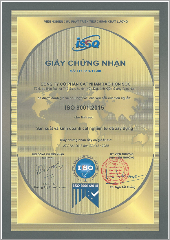 Công ty đã đi vào hoạt động từ tháng 7 năm 2017, sản phẩm gồm có: Cát trộn bê tông và cát vữa xây tô có kích cỡ tương đương với cát tự nhiên trên thị trường. Sản phẩm được quản lý chất lượng theo tiêu chuẩn ISO 9001: 2015; phù hợp với Quy chuẩn quốc gia (QCVN 16:2014/BXD); được Sở xây dựng Kiên Giang công bố hợp quy.
