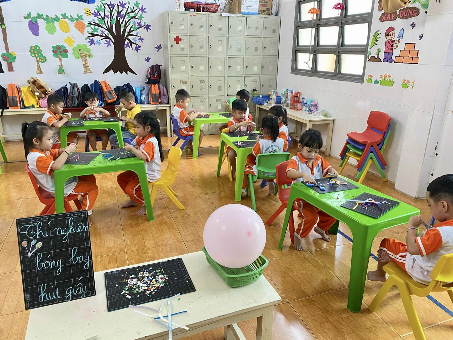 Tại trường Mầm non Khải Trí, việc khám phá và học hỏi khoa học là một phần không thể thiếu trong quá trình giáo dục trẻ. Mỗi hoạt động giáo dục khoa học không chỉ giúp trẻ mầm non hiểu về thế giới xung quanh mình mà còn kích thích sự tò mò và sự sáng tạo. Một trong những thí nghiệm khoa học thú vị mà các trẻ tại trường Mầm non Khải Trí được tham gia là thí nghiệm Bóng bay hút giấy.