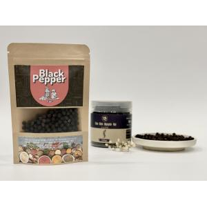 Tiêu đen nguyên hạt là một loại gia vị được lựa chọn và thu hái cẩn thận từ hạt tiêu chín đỏ, sau đó được sấy khô tỉ mỉ, trước khi được đóng gói giữ nguyên hạt. Hạt tiêu sẽ có màu đen và có hương vị cay nồng, thậm chí hơi ngọt. Đây là loại gia vị quen thuộc được sử dụng trong các bữa ăn của gia đình Việt, cũng là một loại gia vị không thể thiếu khi chúng ta muốn món ăn của mình trở nên ngon hơn.