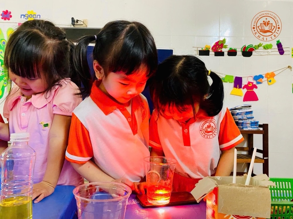 Mỗi trẻ có thể tự do sáng tạo với nhiều loại phẩm màu khác nhau để xem sự kết hợp nào tạo ra ánh sáng đẹp nhất. Điều này không chỉ khuyến khích sự sáng tạo mà còn giúp trẻ hiểu rằng màu sắc có thể thay đổi theo từng loại phẩm màu và cách chúng được pha trộn. Qua đó, trẻ sẽ thảo luận với nhau để tìm ra cách làm thế nào để đèn phát sáng hơn, thúc đẩy sự tương tác và hợp tác giữa các bé.