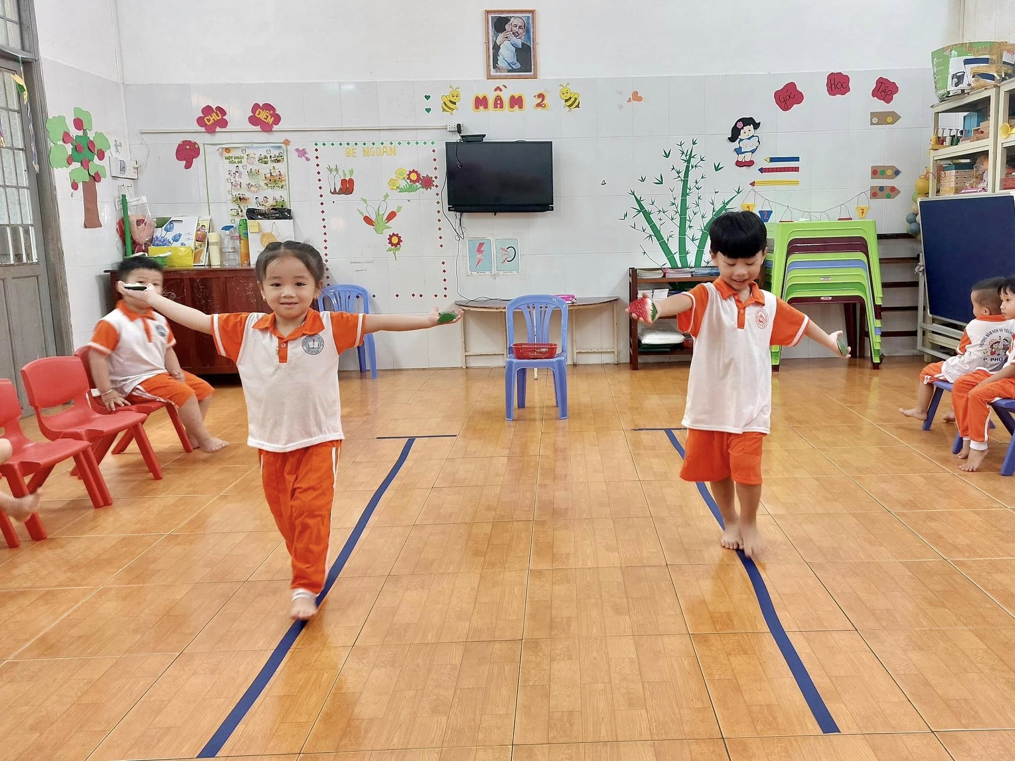 Hoạt động giữ thăng bằng đi trên ghế thể dục là một hoạt động phát triển thể chất và sự khéo léo cho trẻ mầm non. Nó không chỉ giúp trẻ phát triển các kỹ năng cần thiết mà còn tăng cường sự cân đối và tập trung. Đây là một hoạt động vui nhộn và thú vị được các bé tham gia tích cực.