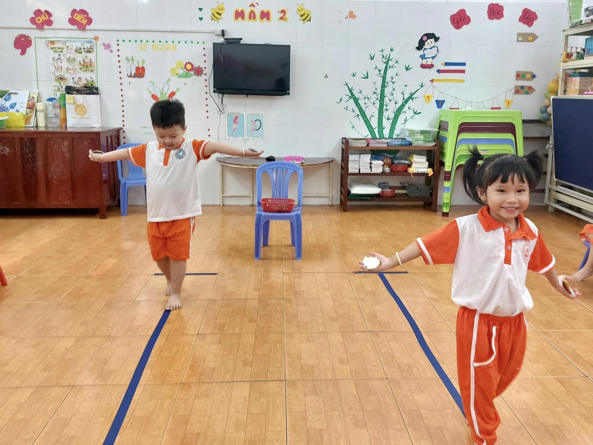 Qua hoạt động này, các bé sẽ rèn luyện sự cân đối và linh hoạt của cơ thể. Các giáo viên sẽ cùng bé nhận ra những tiến bộ, động viên và tạo sự hứng khởi trong quá trình rèn luyện.