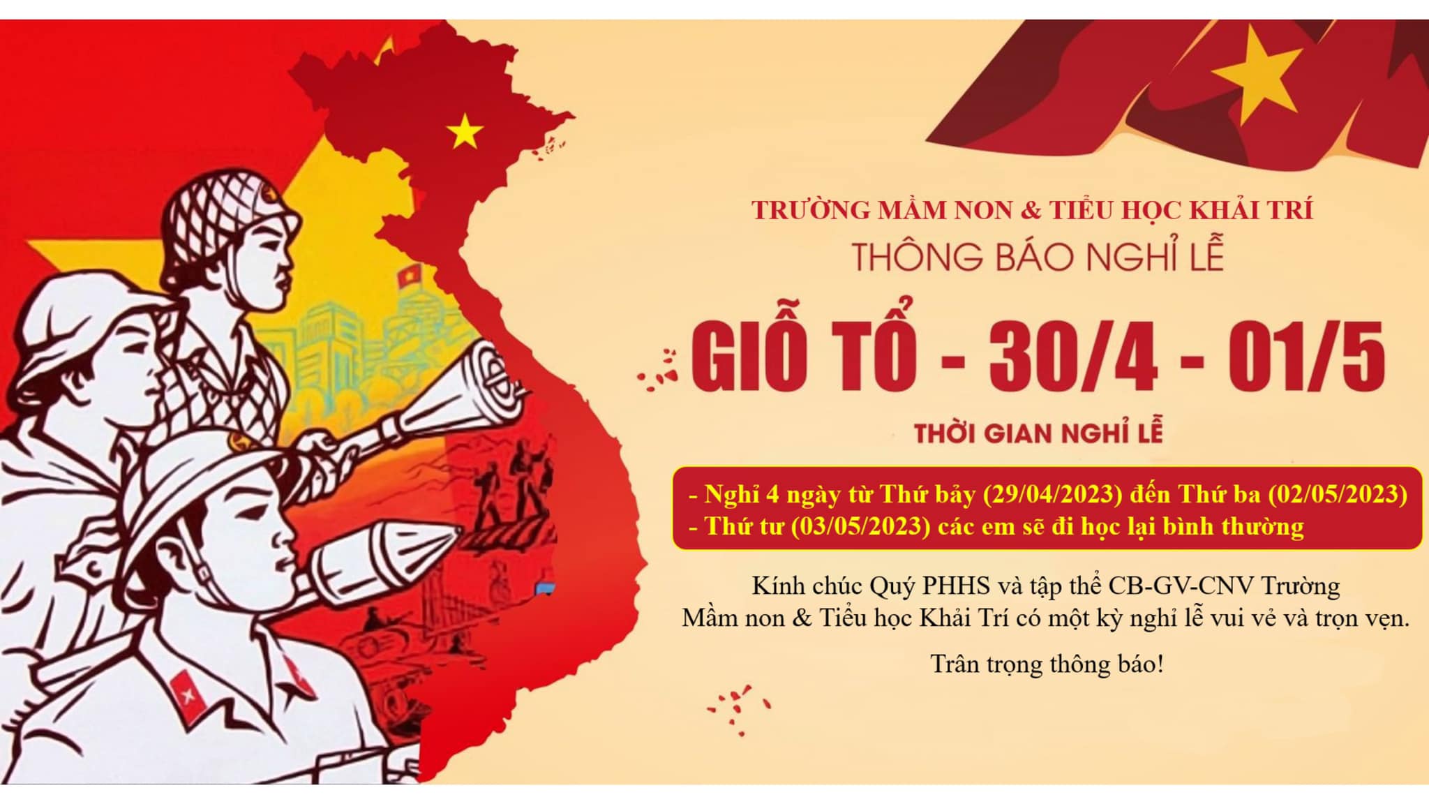 Trường Mầm non và Tiểu học Khải Trí xin thông báo lịch nghỉ lễ giành cho học sinh như sau :
