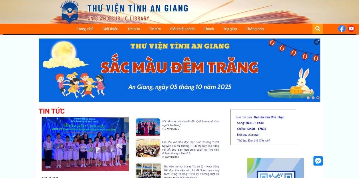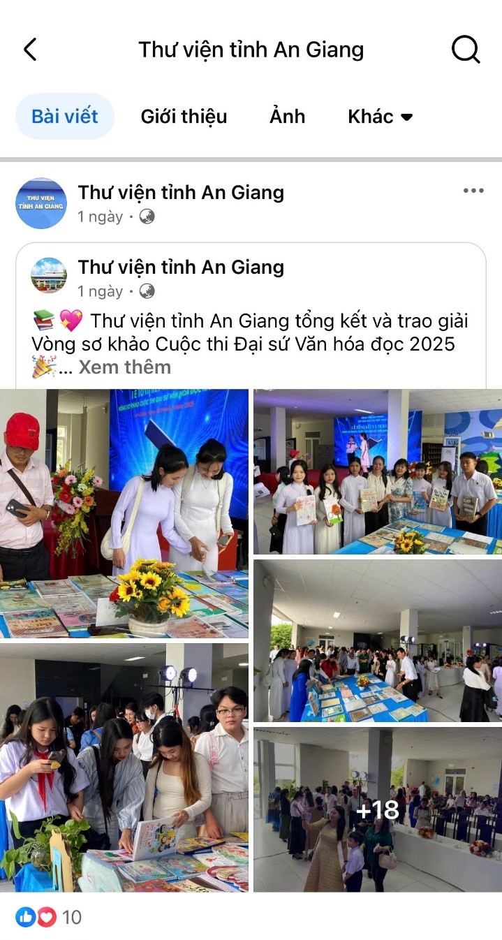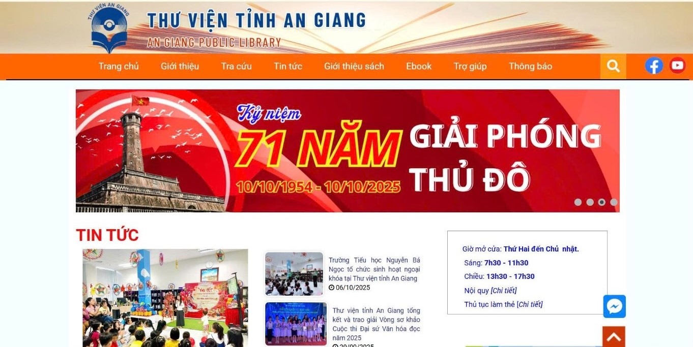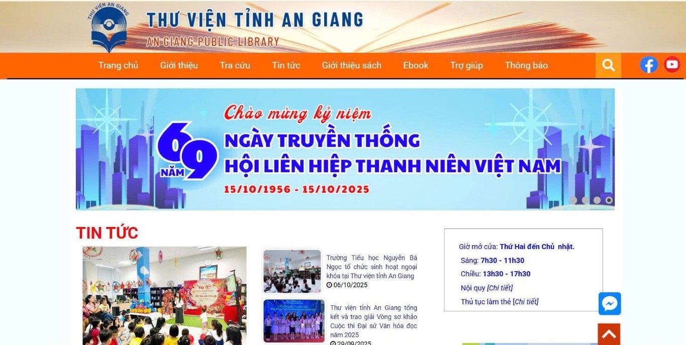 Trong thời gian thực tập tại Thư viện tỉnh An Giang – Trụ sở I, phòng Công nghệ - Truyền thông hồi tháng 10/2025, tôi tham gia thiết kế các banner truyền thông đăng tải trên website của đơn vị, phục vụ công tác thông tin và truyền thông.