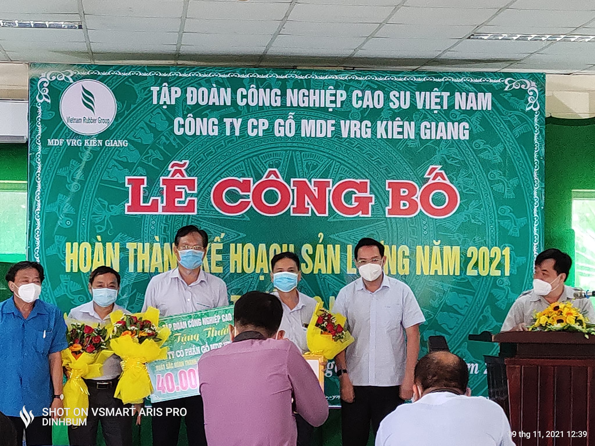 Công ty CP Gỗ MDF VRG Kiên Giang được thành lập vào ngày 01/07/2016 với tổng vốn điều lệ 479 tỉ đồng, trong đó cổ đông lớn nhất là Tập đoàn Công nghiệp Cao su Việt Nam. Nhà máy sản xuất ván MDF tọa lạc trên diện tích 10 hécta ở KCN Thạnh Lộc, Châu Thành, Kiên Giang và sử dụng nguyên liệu thô chủ yếu là gỗ tràm nước, bạch đàn, keo lai.
