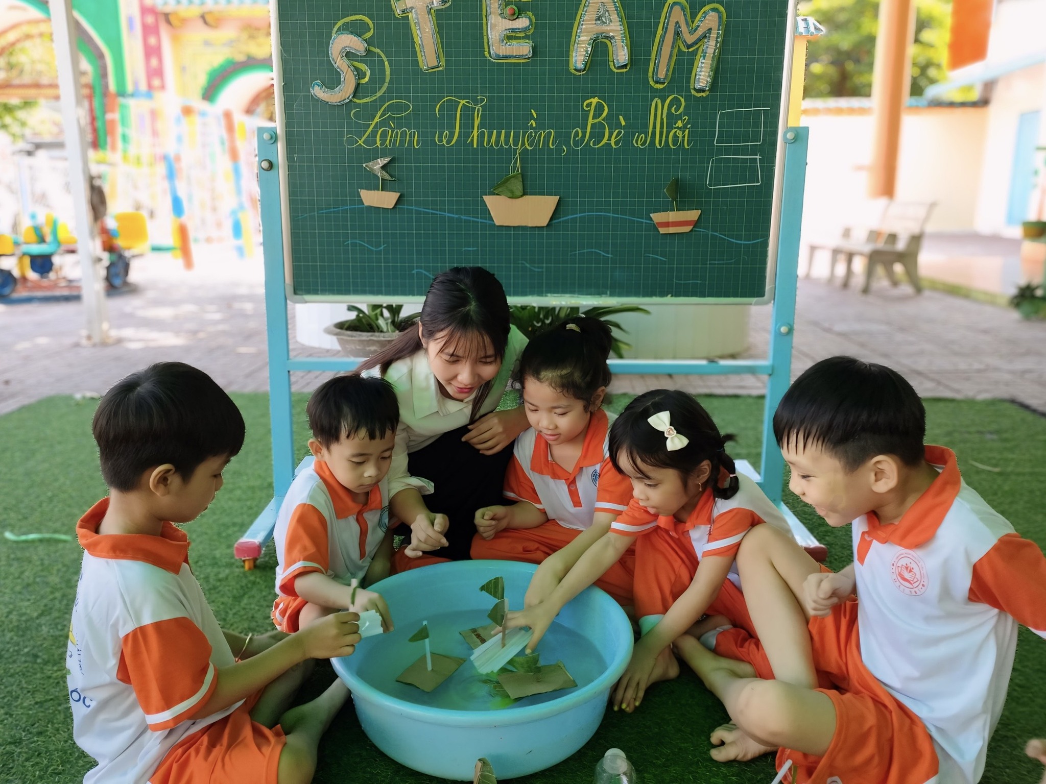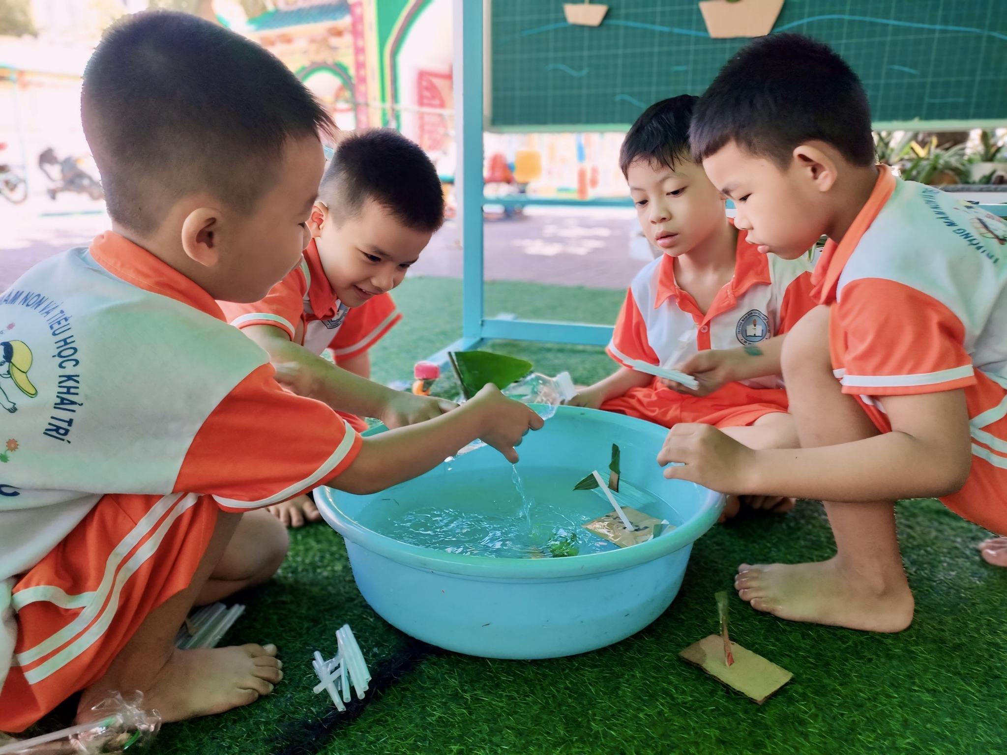 Cuối buổi học, trẻ sẽ được tự tay thả những chiếc thuyền, bè do mình làm ra vào nước và tự đánh giá được sản phẩm của mình đã đạt yêu cầu và có thực sự nổi được trên mặt nước hay không, sau đó tiếp tục điều chỉnh cho đến khi hoàn thiện sản phẩm của mình. Tiết học đã mang đến cho các trẻ rất nhiều niềm vui và cả sự háo hức, chờ đón tiết học mới tiếp theo của lớp.