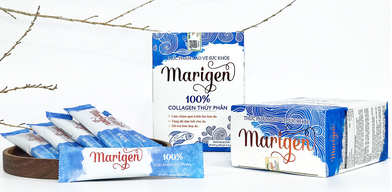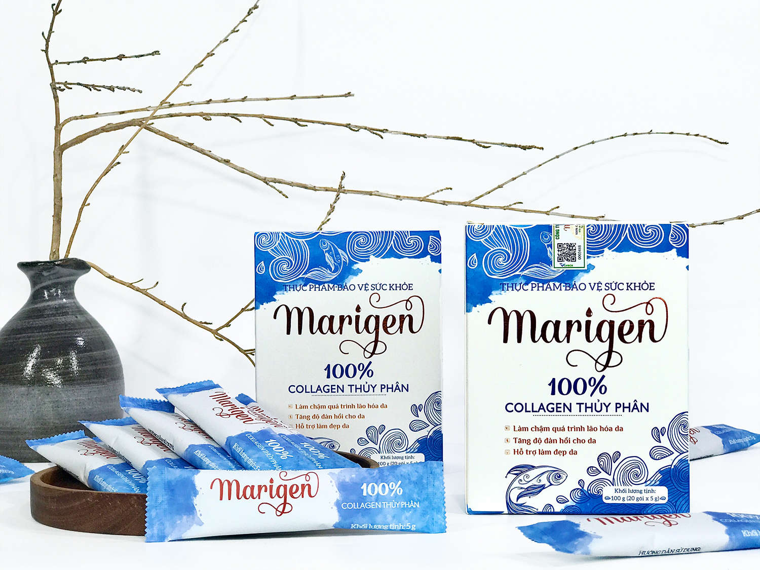 Marigen Collagen là loại collagen được làm 100% từ collagen cá ngọt. Với tác dụng vô cùng tốt cho sức khỏe như dưỡng ẩm da, mịn da, tăng độ đàn hồi cho da, giữ được nét xuân xanh của các chị em sử dụng. Ngoài ra, dòng sản phẩm Marigen Collagen còn cung cấp liệu trình 20 ngày cho chúng ta, với liều lượng tối thiểu 5gr/ngày theo khuyến cáo từ kiểm nghiệm lâm sàng tại Canada.