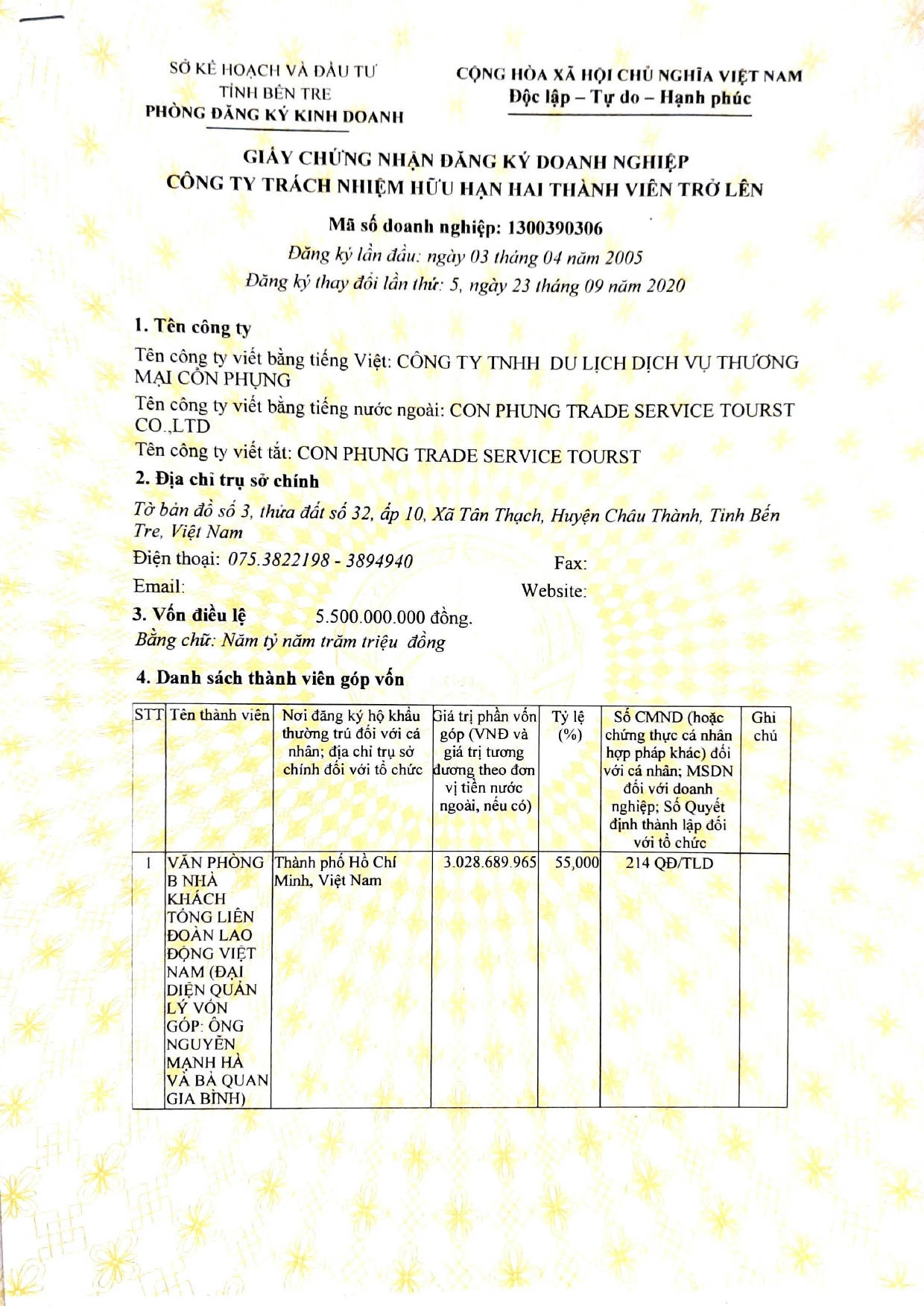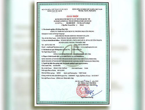 Khu Du Lịch Cồn Phụng Bến Tre thuộc quản lý của Công ty TNHH Du lịch Dịch vụ Thương mại Cồn Phụng (Viết tắt bằng tiếng nước ngoài: Con Phung Trade Service Tourst Co., Ltd)