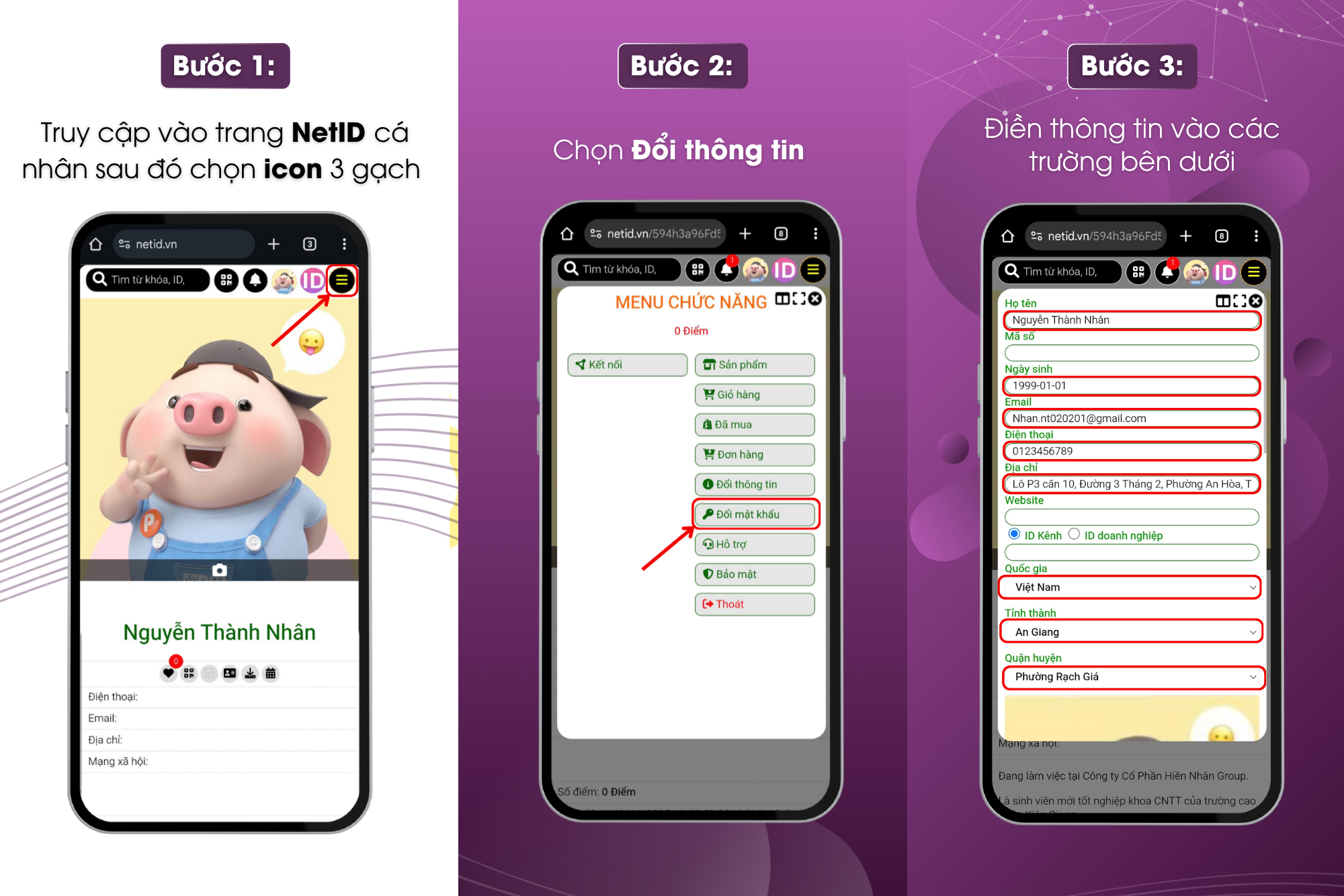 Bước 2: chọn đổi thông tin