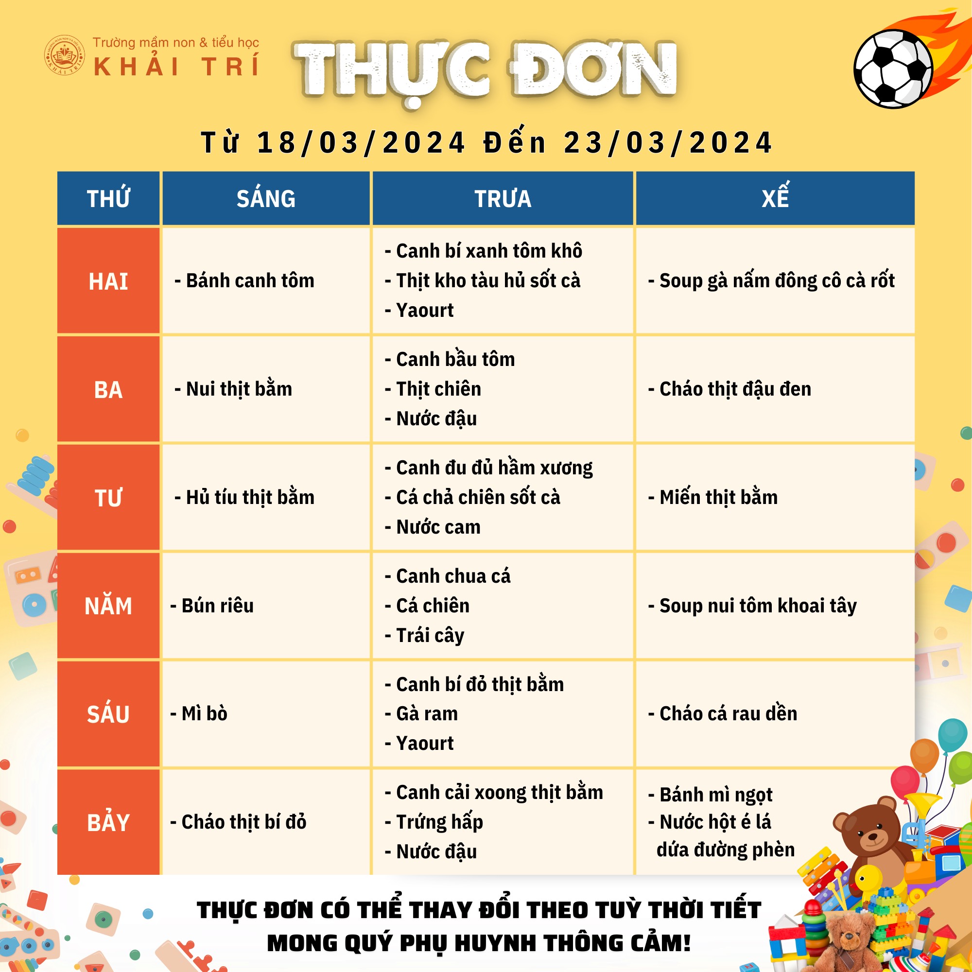 Thực Đơn Tuần Mới (Từ 18/03/2024 - 23/03/2024)
