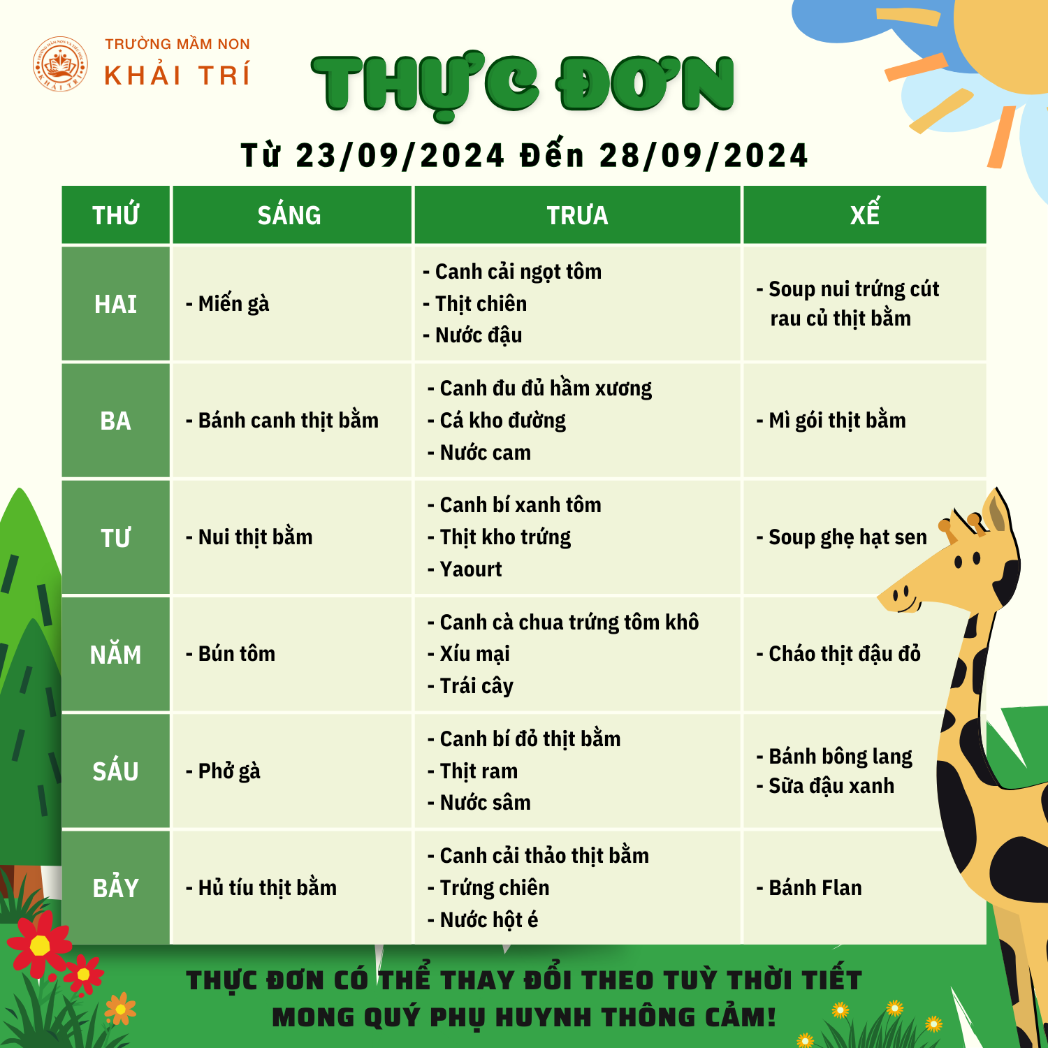 Thực Đơn Tuần Mới (Từ 23/09/2024 - 28/09/2024)