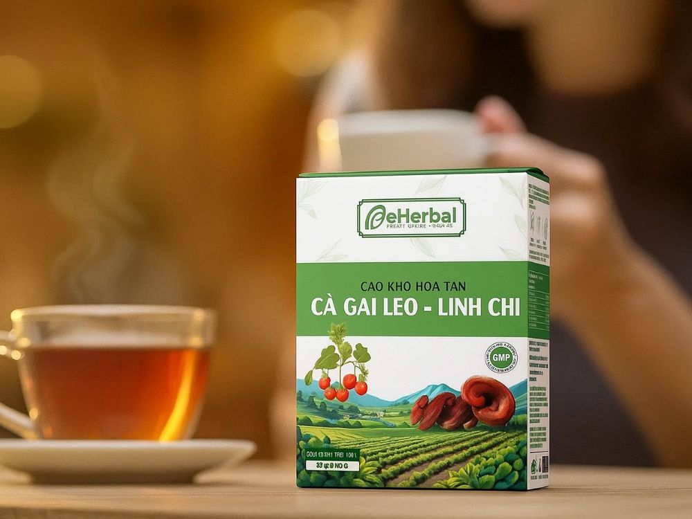 Cao khô hòa tan Cà gai leo Linh chi của Gold Herbal: Một giải pháp tiện lợi và hiệu quả để bảo vệ sức khỏe lá gan. Sản phẩm là sự kết hợp của hai loại thảo dược quý là Cà gai leo và Linh chi, được bào chế dưới dạng cao khô hòa tan tiện lợi. Với công nghệ chiết xuất hiện đại, sản phẩm không chỉ giữ trọn vẹn tinh chất của dược liệu mà còn giúp bạn dễ dàng bổ sung hàng ngày, hỗ trợ giải độc và tăng cường chức năng gan một cách tự nhiên.