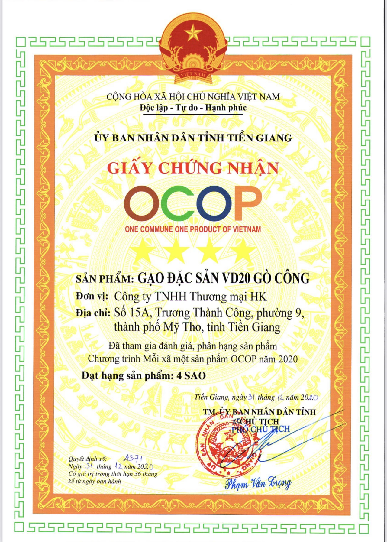 - Tên sản phẩm: Gạo Đặc Sản VD20 Gò Công HKG