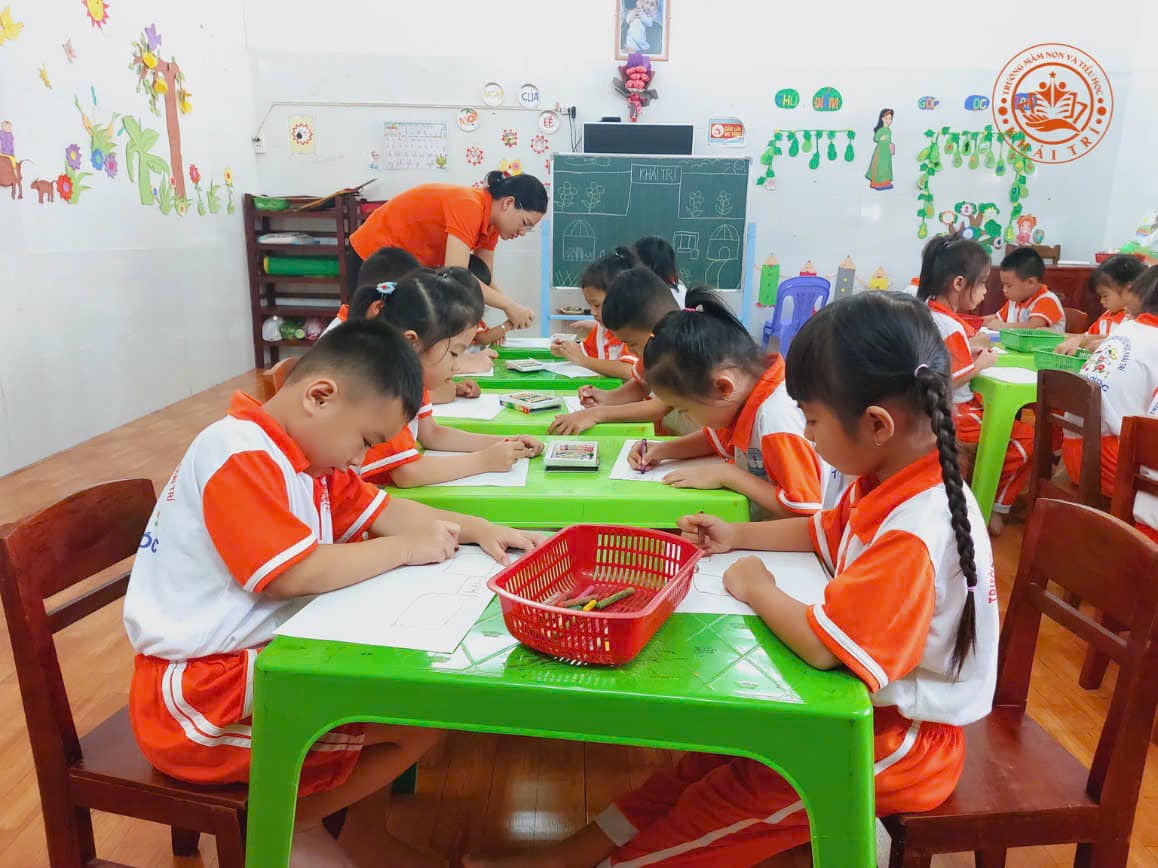 Tại trường Mầm non Khải Trí, hoạt động vẽ không chỉ đơn thuần là một môn học mà còn là một phương tiện tuyệt vời để trẻ phát triển tư duy sáng tạo và kỹ năng vận động tinh. Với không gian rộng rãi và đội ngũ giáo viên tận tâm, các em học sinh được khuyến khích thể hiện cảm xúc và ý tưởng của mình thông qua những bức tranh đầy màu sắc.