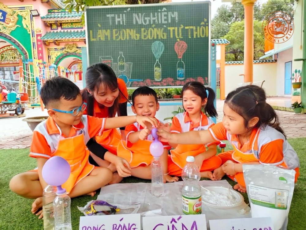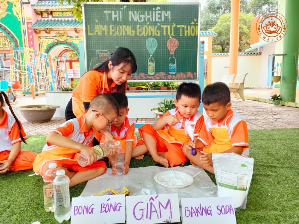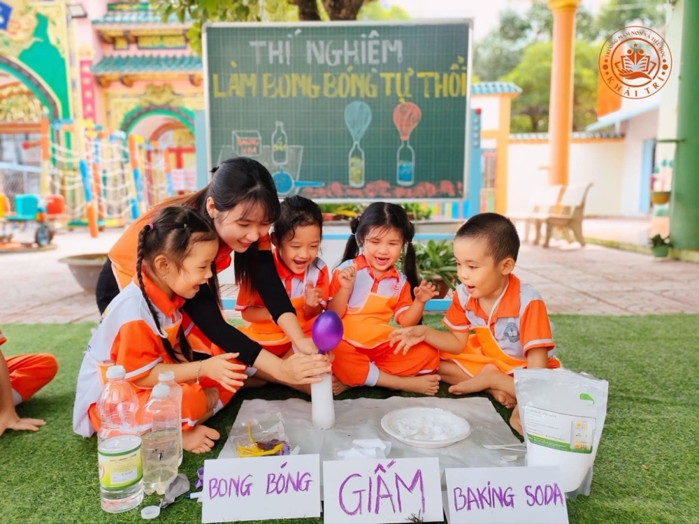 Trường Mầm non Khải Trí luôn nỗ lực mang đến cho các bé những trải nghiệm học tập thú vị và bổ ích, giúp các bé phát triển toàn diện cả về trí tuệ và thể chất. Tiết học Thí Nghiệm Vui - Làm Bóng Bóng Tự Thổi là một trong những hoạt động thể hiện rõ quan điểm giáo dục đó.