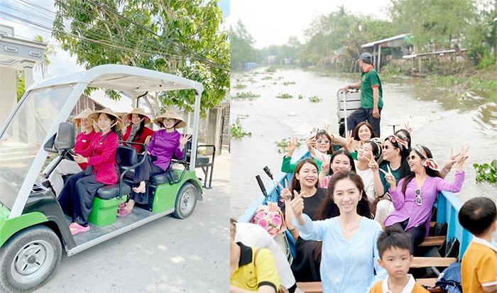 - Nếu là ô tô hoặc xe khách đoàn bạn có thể lựa chọn đậu xe tại bãi xe Tuấn Tường di chuyển vào vườn bằng xe điện trung chuyển hoặc ghe/đò bằng đường sông.