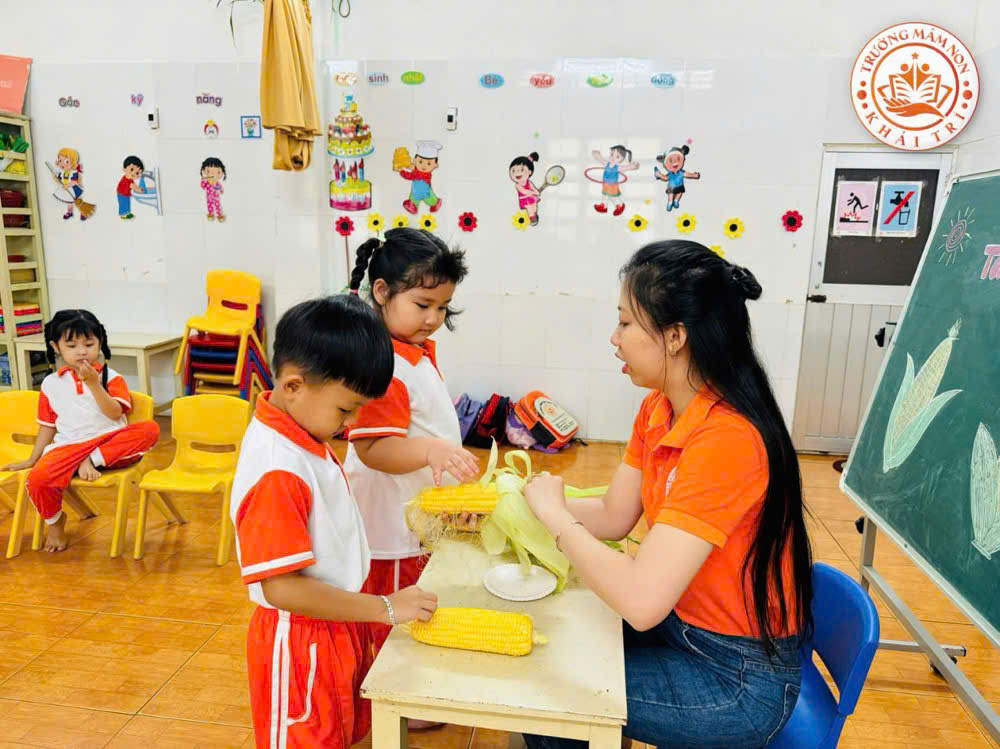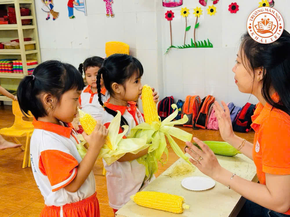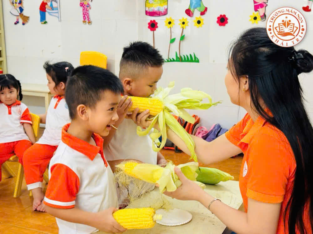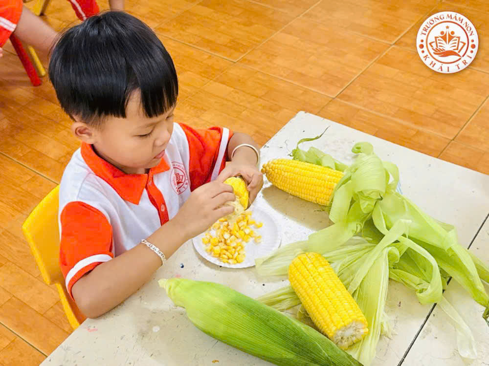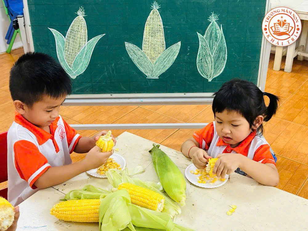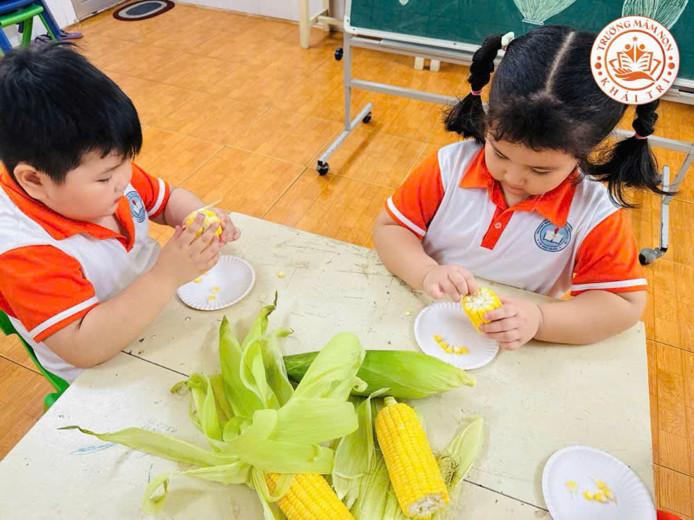 - Phát triển ngôn ngữ: Trong quá trình thực hiện, các giáo viên sẽ khuyến khích các bé gọi tên các bộ phận của bắp, mô tả quá trình bóc tách, từ đó giúp các bé mở rộng vốn từ.