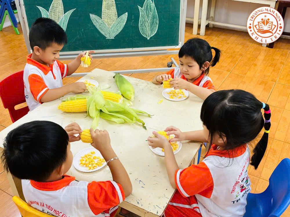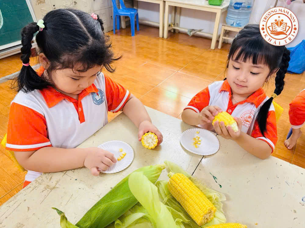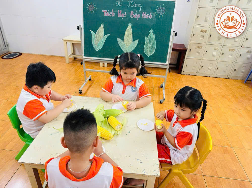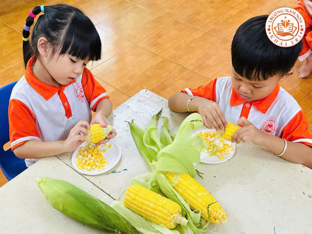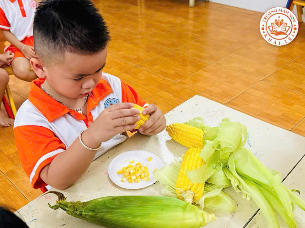 Tại trường Mầm non Khải Trí, các hoạt động trải nghiệm luôn được chú trọng nhằm mang đến cho các bé những giờ học lý thú và bổ ích. Và tại đây, các bé lớp Mầm đã có một buổi trải nghiệm thật thú vị với hoạt động Tách Hạt Bắp.
