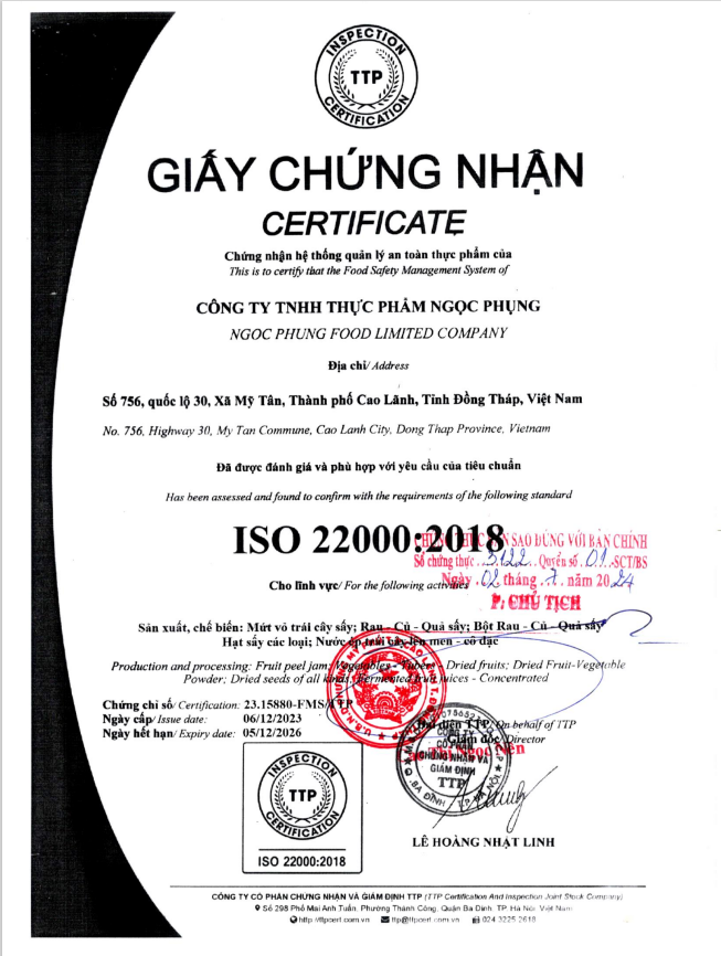 Ngọc Phụng Food ra đời với niềm đam mê cống hiến mong muốn đem lại sản phẩm chất lượng nhất tới khách hàng, nâng cao vị thế Việt Nam trên trường quốc tế.