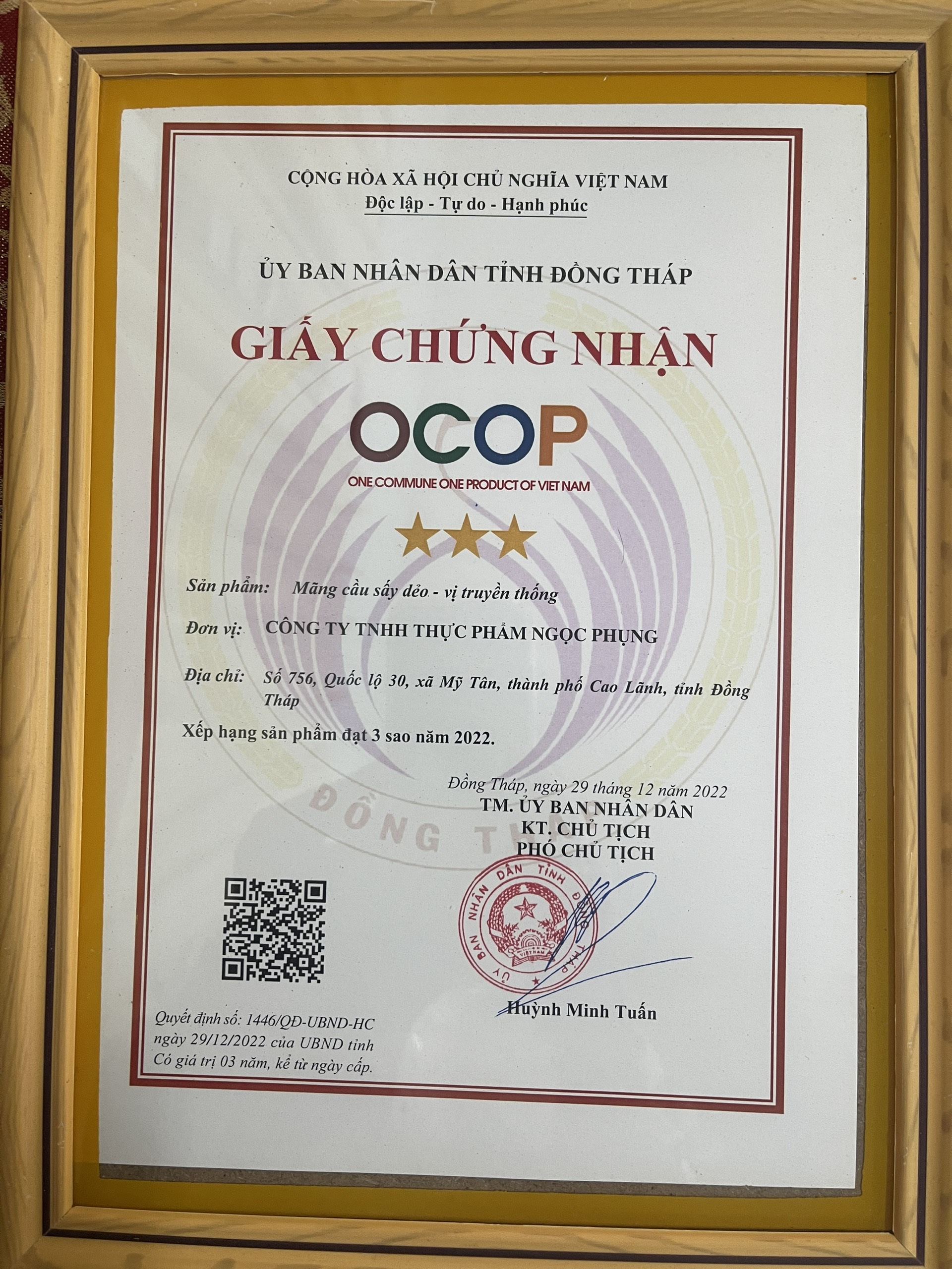 Bà Bùi Thị Thanh Thuỷ - Giám đốc Ngọc Phụng Food chia sẻ: "Nguồn nguyên liệu của Ngọc Phụng là 100% hiện nay từ tỉnh Đồng Tháp và những sản phẩm Ngọc Phụng nghiên cứu tất cả đều nhắm tới nguồn nguyên liệu của tỉnh mình..."