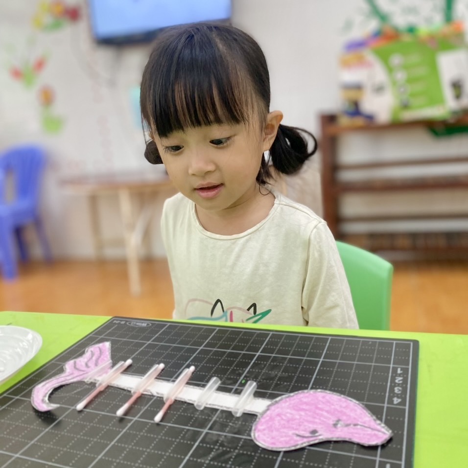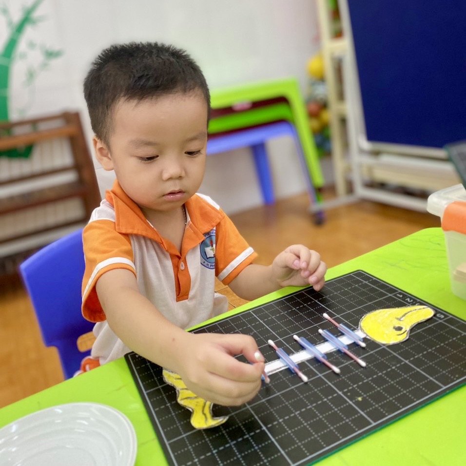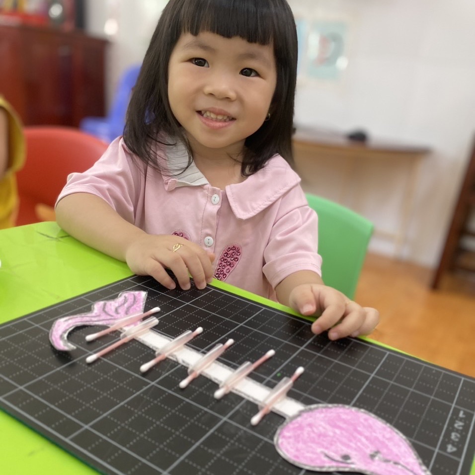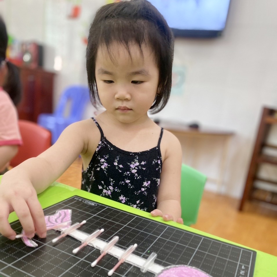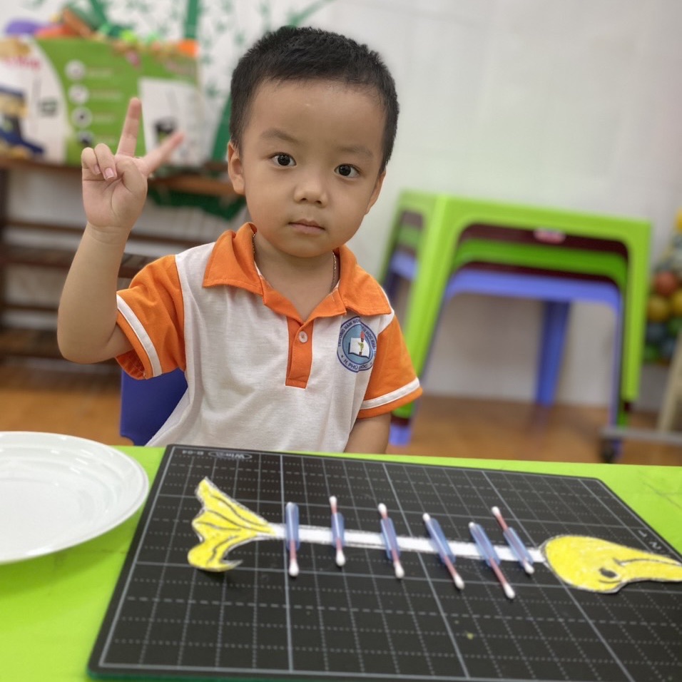 Trong quá trình thực hiện, trẻ sẽ phải sử dụng khả năng tư duy hình học và khéo léo để ghép nối các bông tăm với nhau. Trẻ cần tập trung và chính xác để đảm bảo rằng các bông tăm được kết nối một cách chắc chắn. Đây là một cơ hội tuyệt vời để trẻ rèn kỹ năng tay mắt và phát triển sự nhạy bén trong việc điều khiển động tác nhỏ.