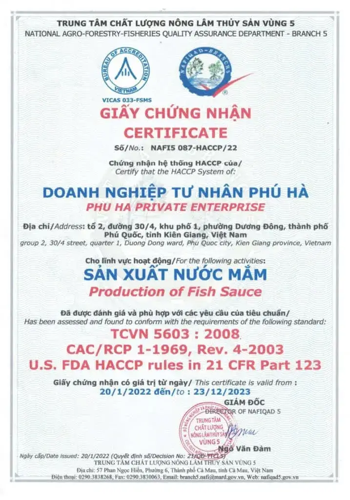 Phú Hà vinh dự là một trong những doanh nghiệp tiên phong đạt đầy đủ quy chuẩn khắt khe để cung cấp nước mắm Phú Quốc mang chỉ dẫn địa lý được Liên minh Châu Âu bảo hộ. Đây không chỉ là dấu mốc quan trọng mà còn khẳng định uy tín, chất lượng và vị thế của nước mắm Phú Hà trên thị trường trong nước và quốc tế.