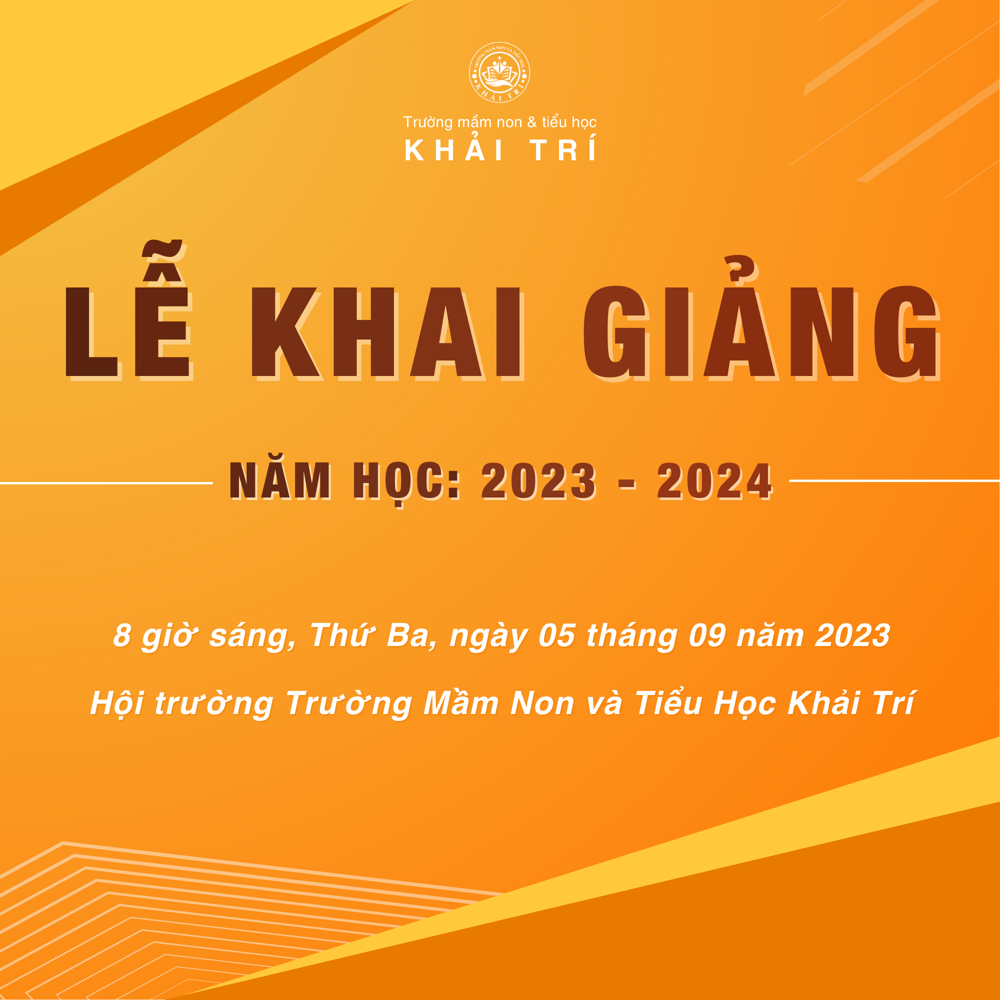 Trường Mầm Non và Tiểu Học Khải Trí trân trọng thông báo đến Quý phụ huynh đến dự Lễ “Ngày Hội Bé Đến Trường” năm học mới 2023-2024 của các bé.