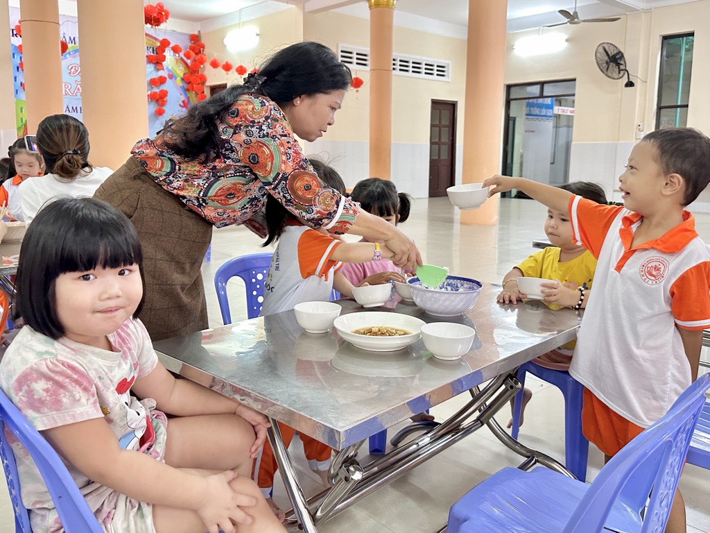 Buổi cơm gia đình đã tạo ra một không gian thân thuộc và ấm cúng, giúp các bé cảm nhận được sự quan tâm và chăm sóc từ gia đình và cộng đồng. Các bé có thể ngồi chung bàn, trò chuyện và chia sẻ niềm vui cùng nhau. Điều này giúp tạo ra một môi trường học tập tích cực và khuyến khích sự gắn kết trong nhóm.
