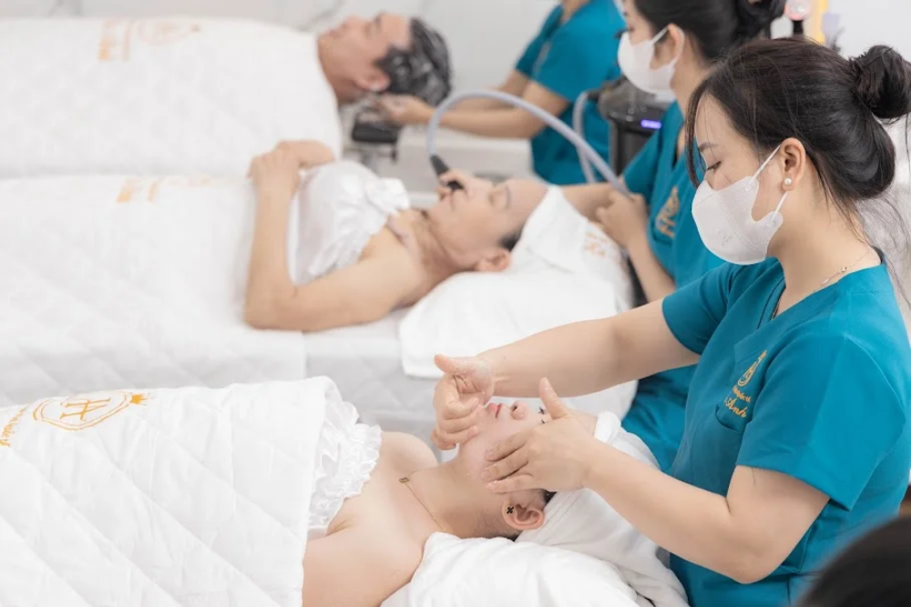 - Đội ngũ chuyên viên làm đẹp của chúng tôi không chỉ có kỹ năng chuyên môn cao và kinh nghiệm lâu năm, mà còn có tinh thần tận tâm và chăm sóc chi tiết từng cảm giác của khách hàng, đảm bảo rằng mỗi liệu pháp đều mang lại hiệu quả tối đa và sự thoải mái tuyệt vời nhất.