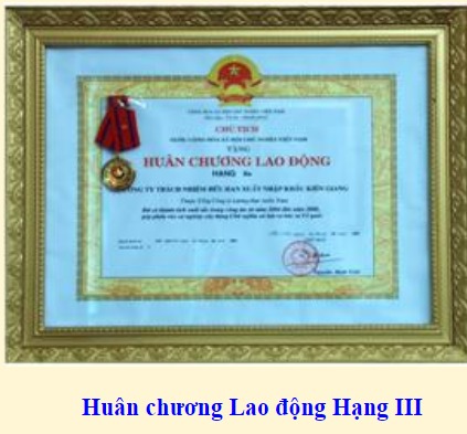 - Được UBND tỉnh Kiên Giang tặng bằng khen vì đã có thành tích xuất sắc trong công tác an toàn vệ sinh lao động năm 2009